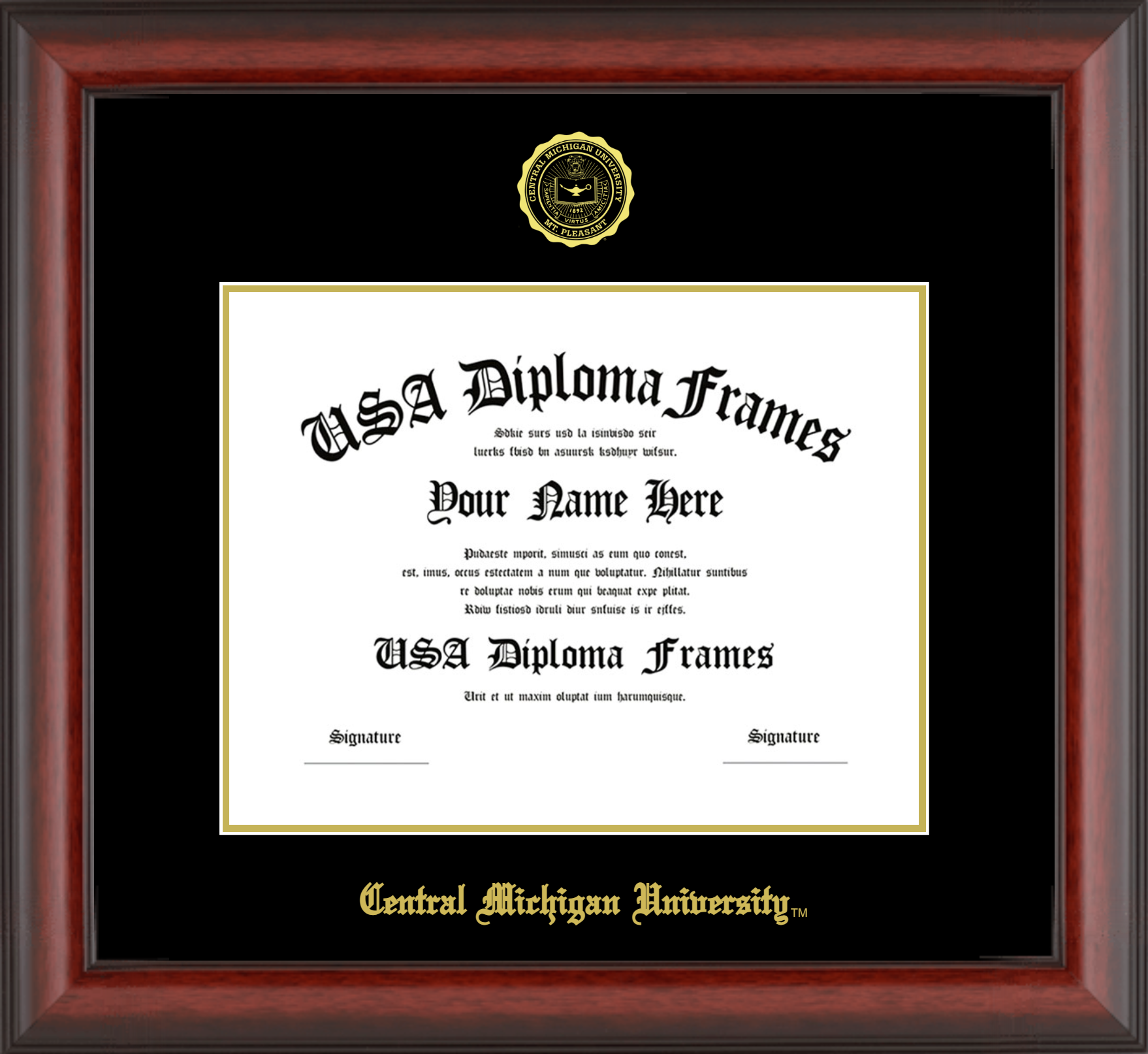 Central Michigan University Diploma Frame – Cherry Mahogany Matte – Black and Gold Mat