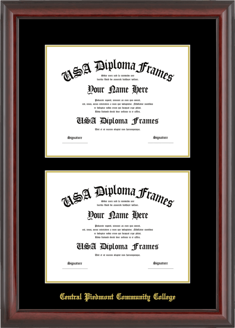 Central Piedmont Community College Double Diploma Frame – Double Document – Cherry Mahogany Glossy – Black and Gold Mat