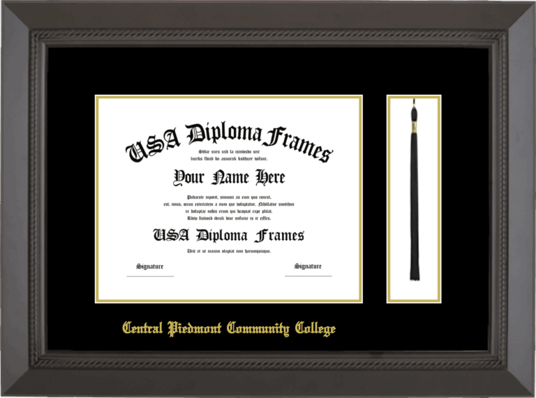 Central Piedmont Community College Diploma Frame – Black Rope – Black and Gold Mat