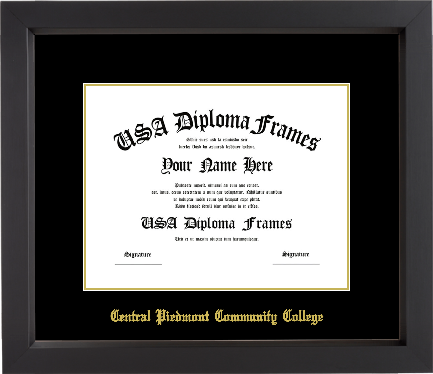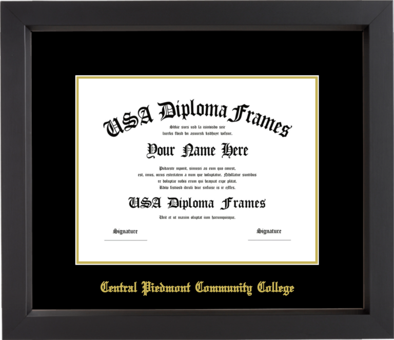 Central Piedmont Community College Diploma Frame – Black Matte – Black and Gold Mat