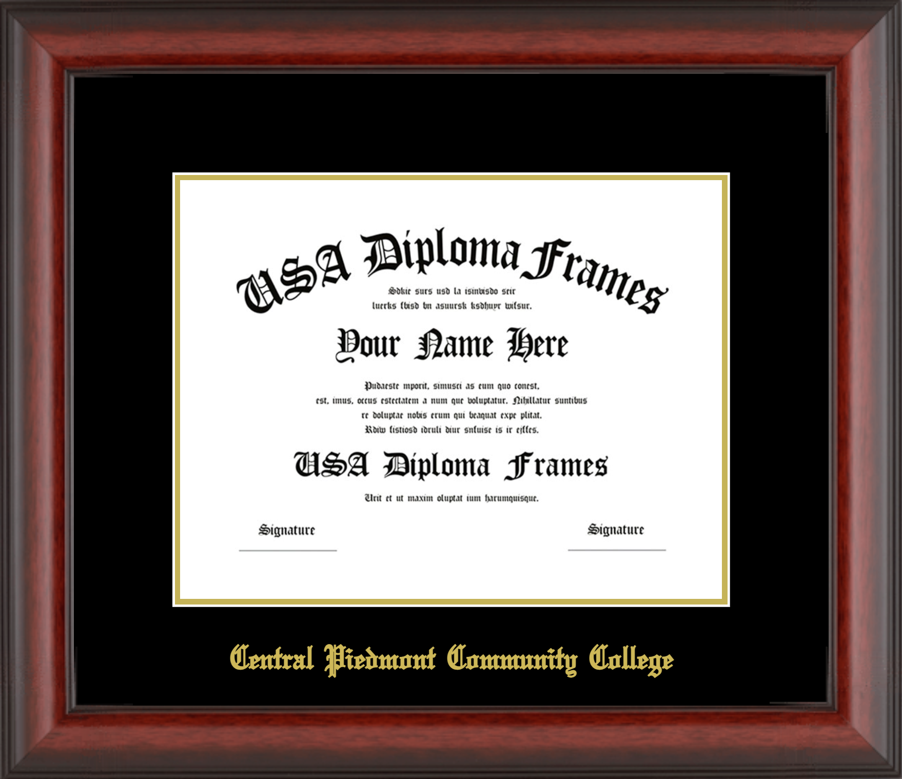 Central Piedmont Community College Diploma Frame – Cherry Mahogany Matte – Black and Gold Mat