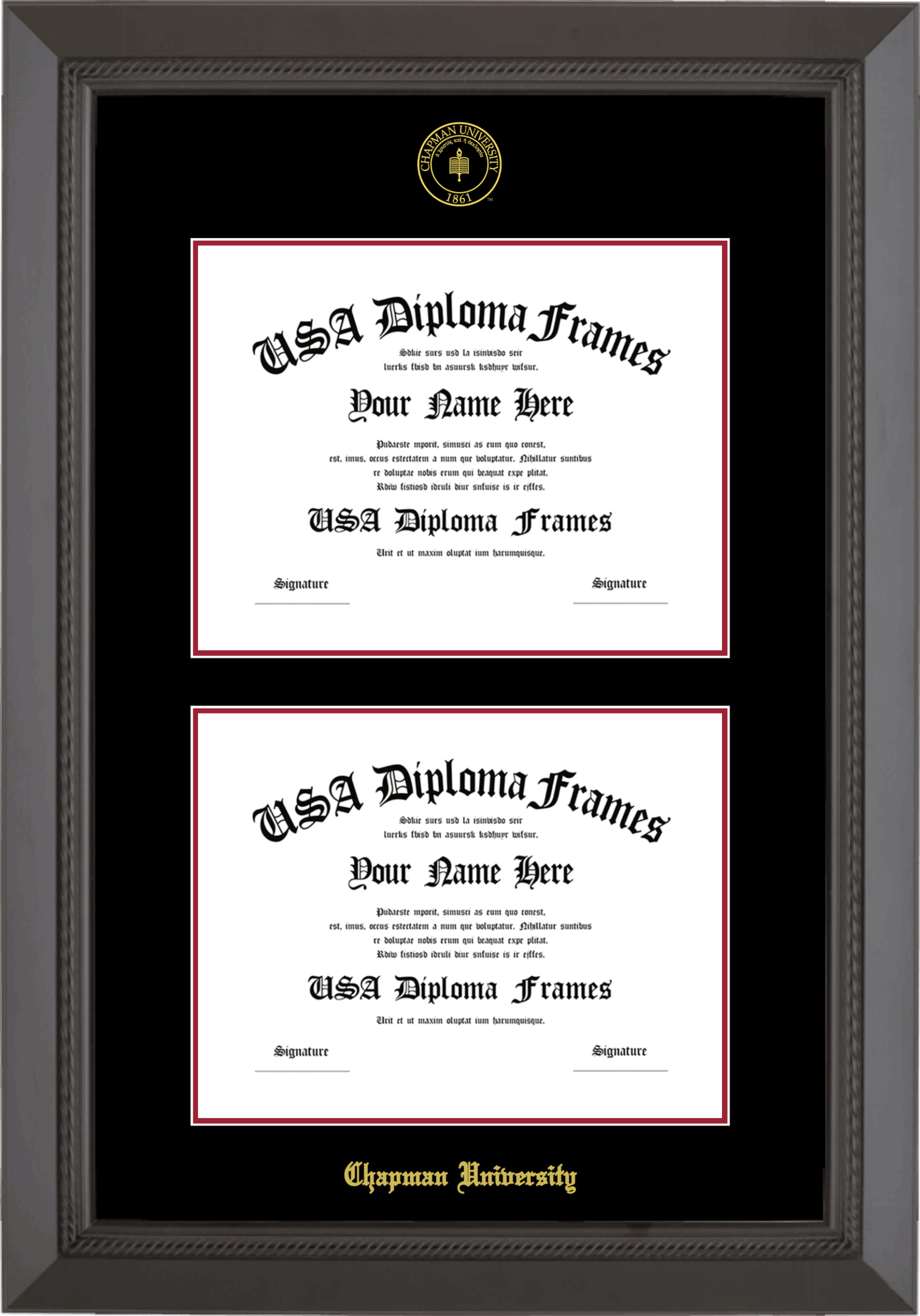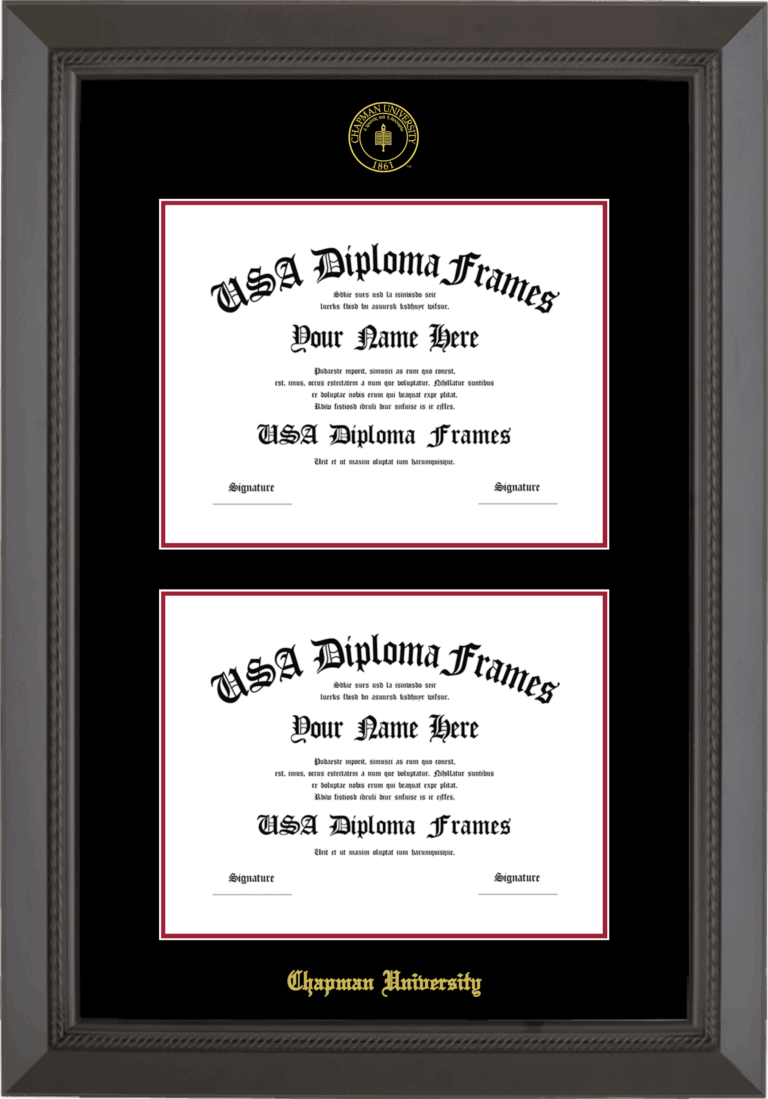 Chapman University Double Diploma Frame – Double Document – Black Rope – Black and Crimson Mat