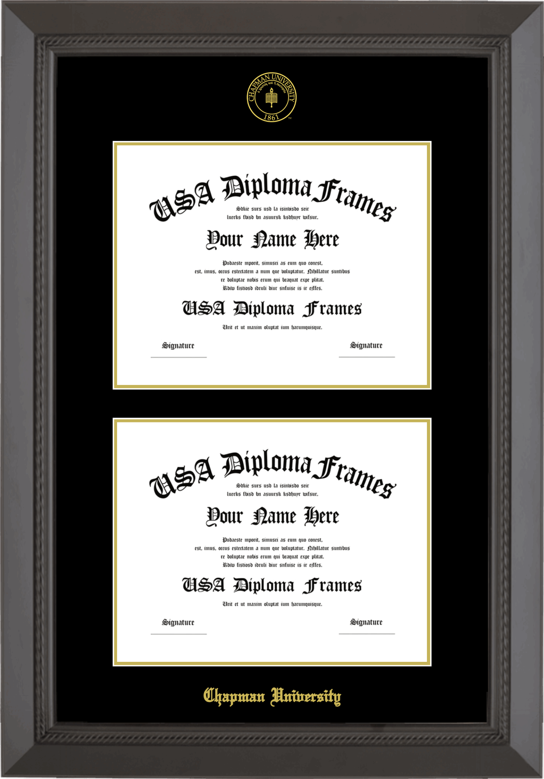Chapman University Double Diploma Frame – Double Document – Black Rope – Black and Gold Mat