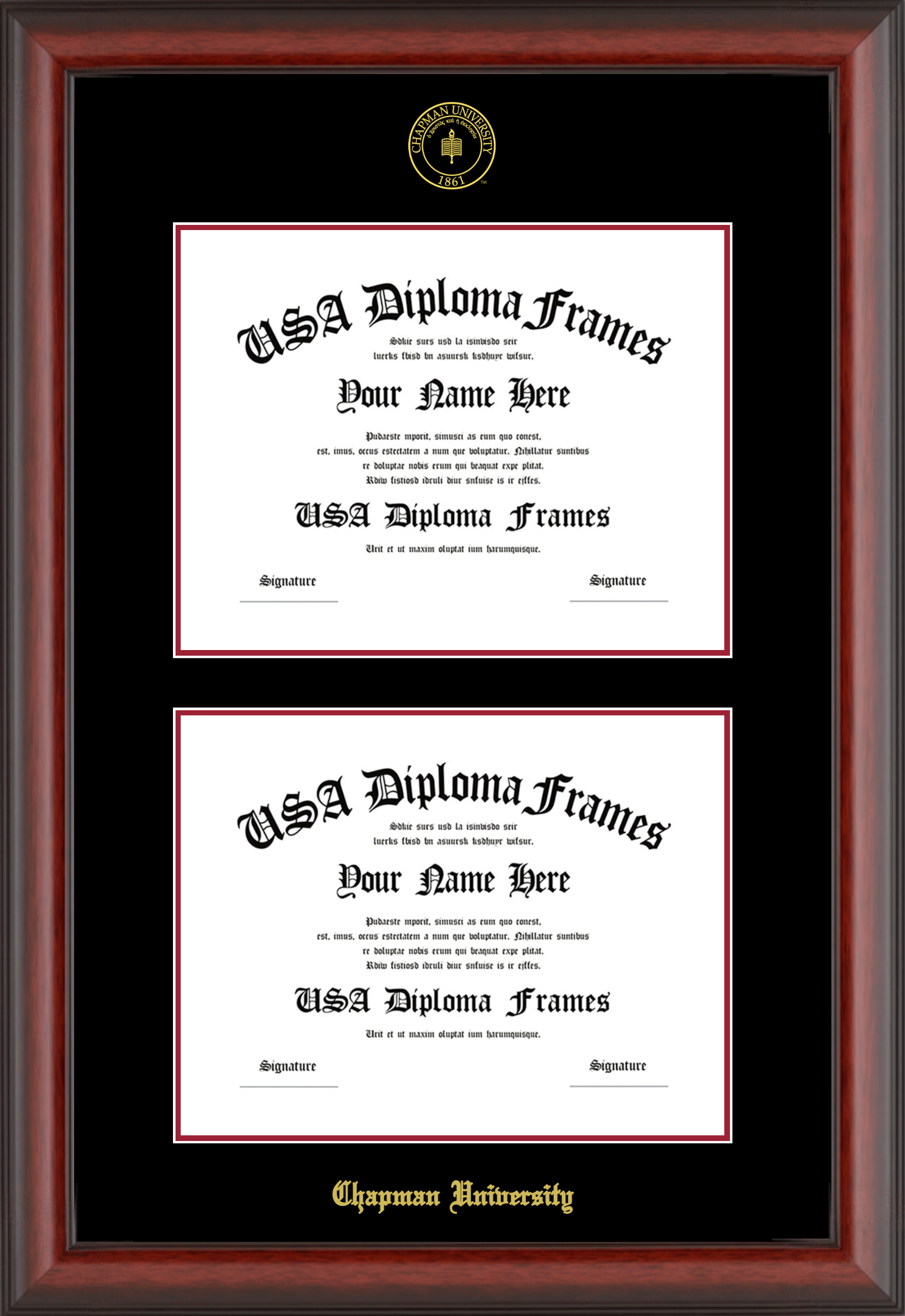 Chapman University Double Diploma Frame – Double Document – Cherry Mahogany Matte – Black and Crimson Mat