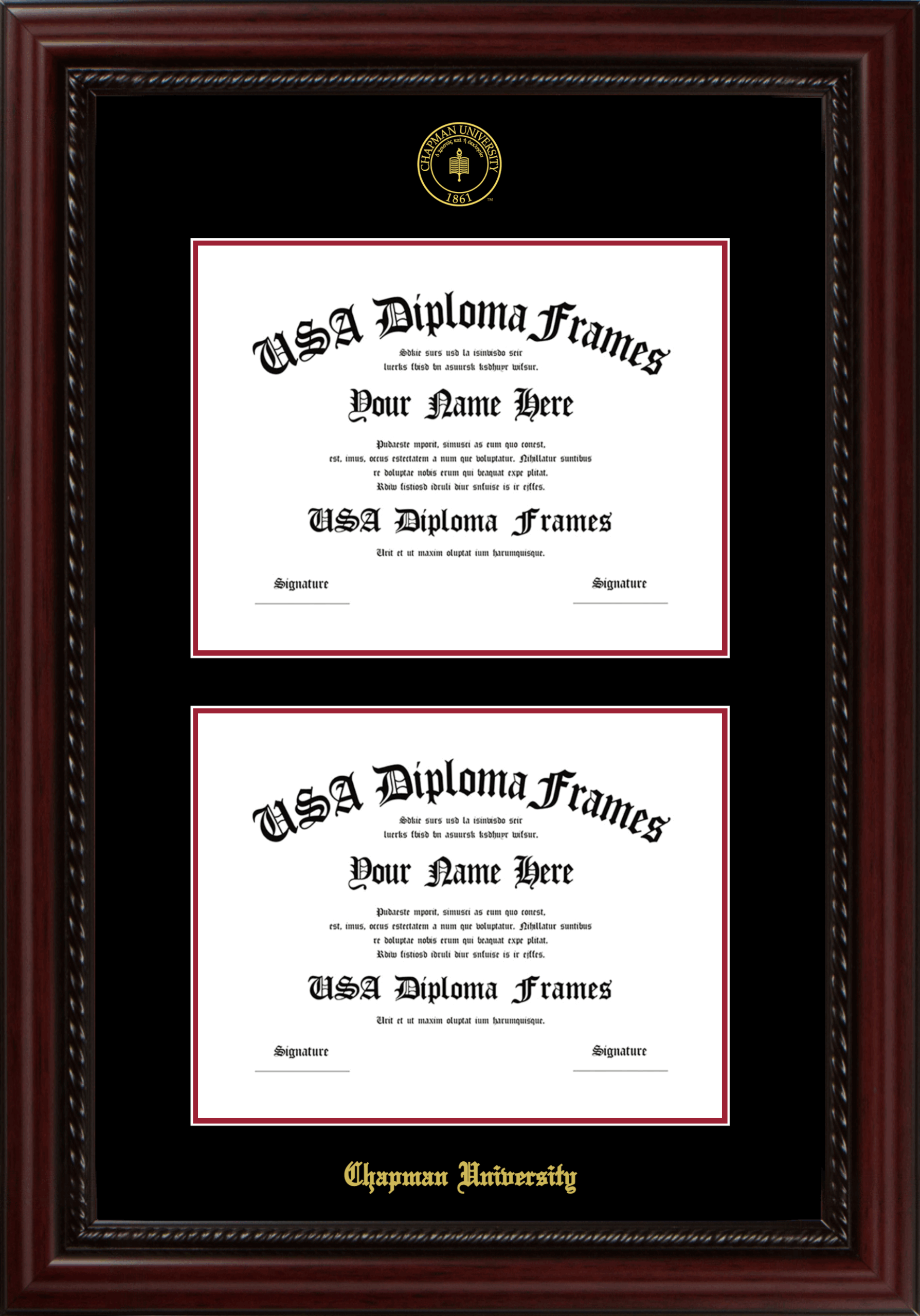 Chapman University Double Diploma Frame – Double Document – Executive Cherry Rope – Black and Crimson Mat