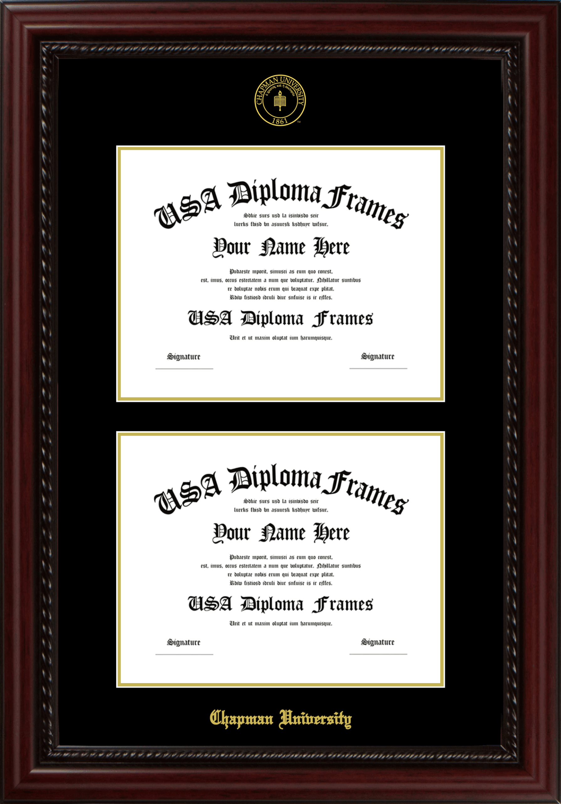 Chapman University Double Diploma Frame – Double Document – Executive Cherry Rope – Black and Gold Mat