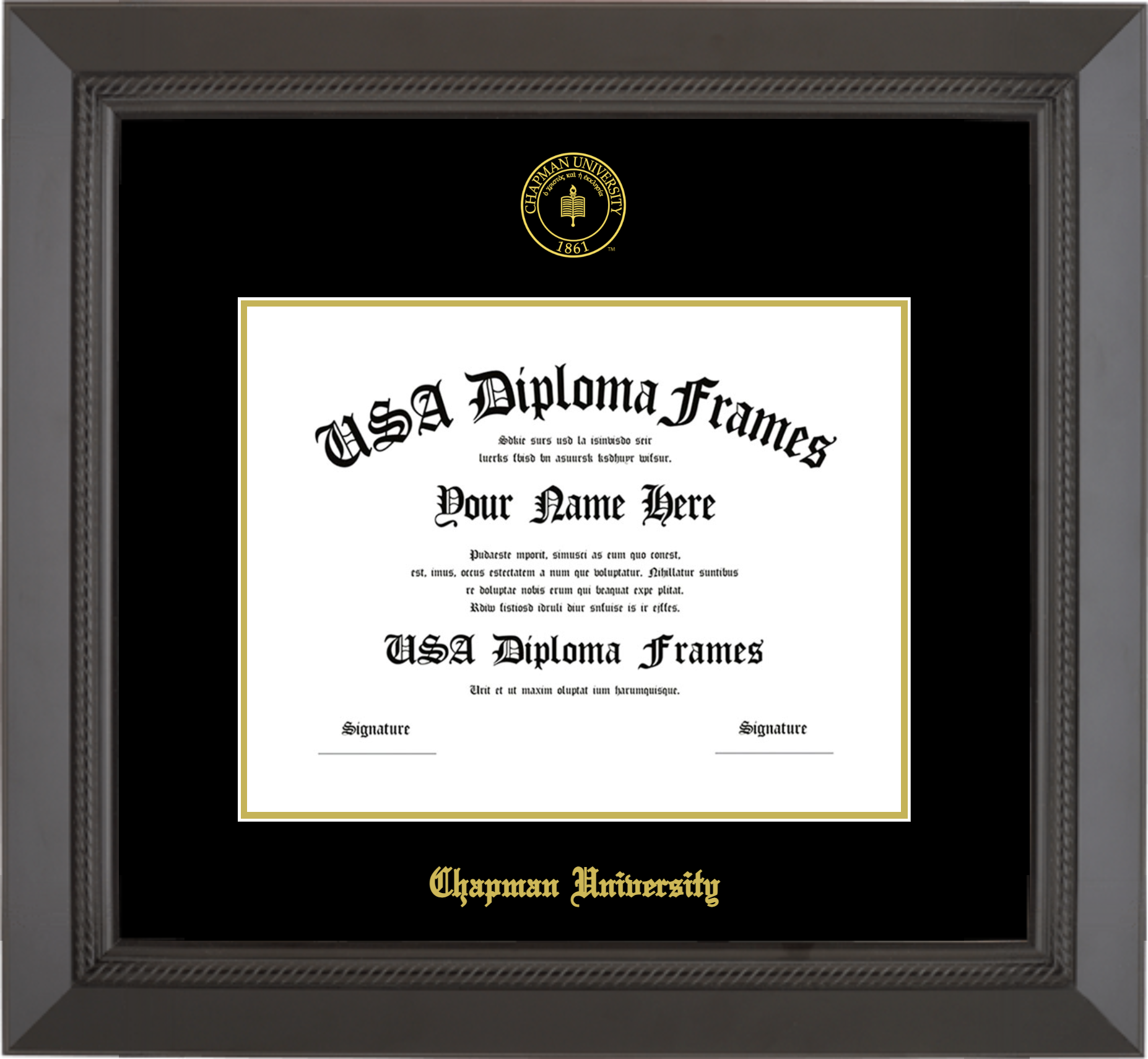Chapman University Diploma Frame – Black Rope – Black and Gold Mat