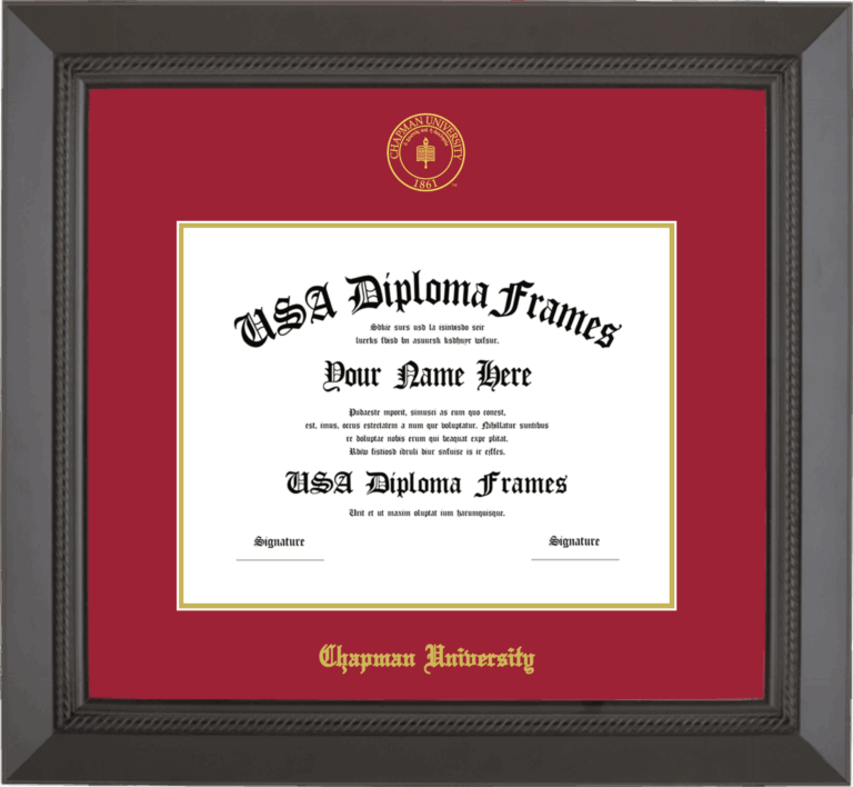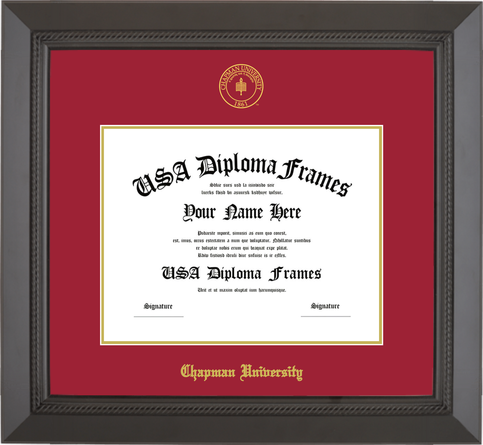 Chapman University Diploma Frame – Black Rope – Crimson and Gold Mat