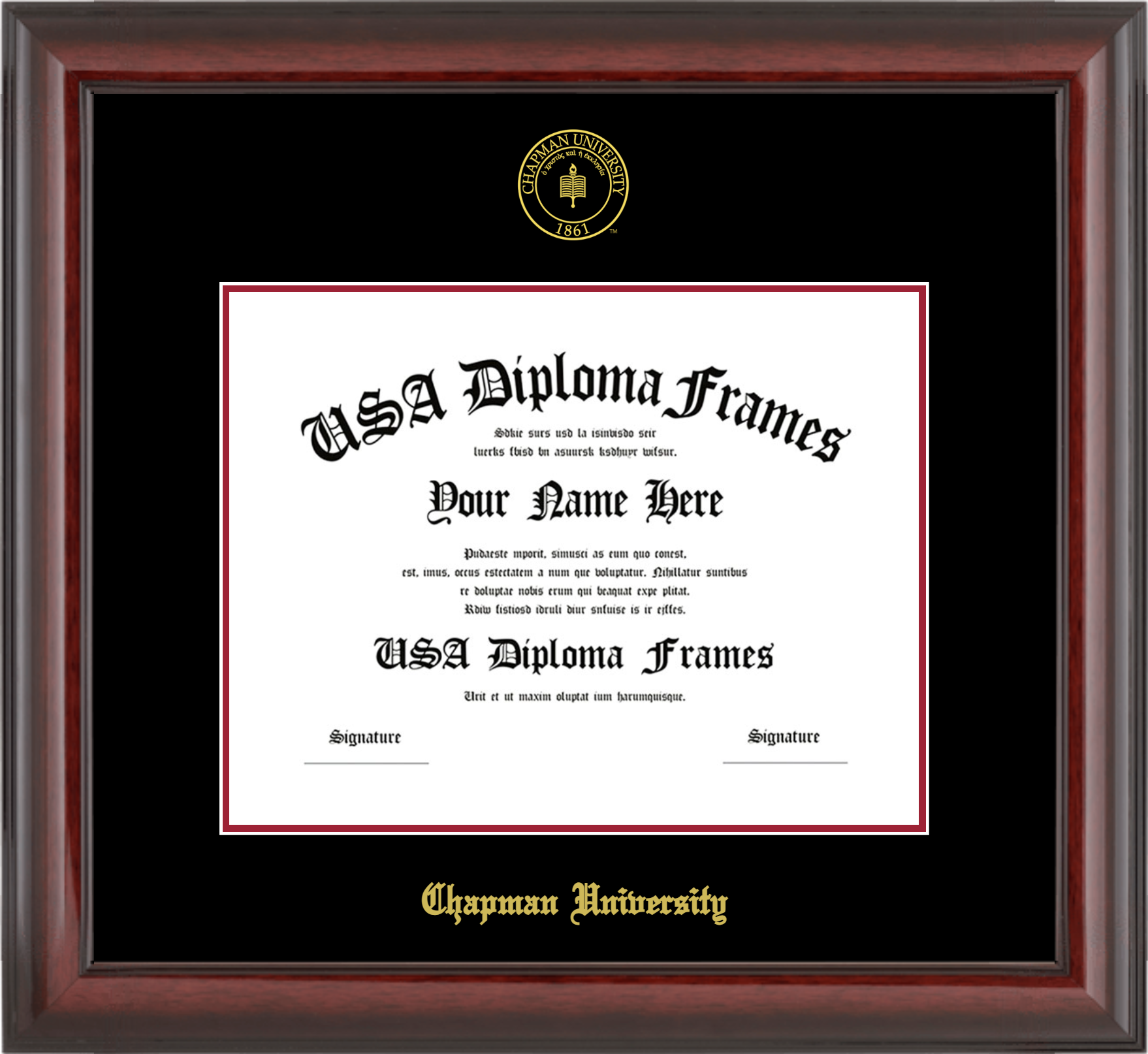 Chapman University Diploma Frame – Cherry Mahogany Glossy – Black and Crimson Mat