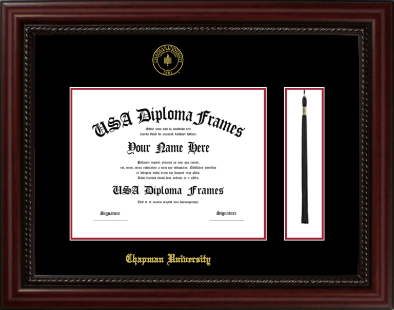 Chapman University Diploma Frame with Tassel – Executive Cherry Rope – Black and Crimson Mat