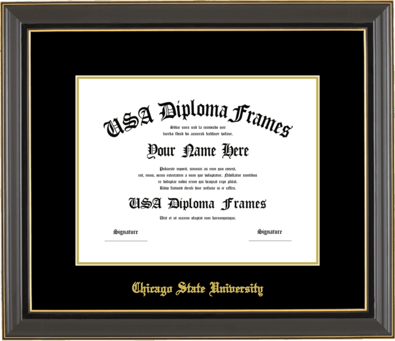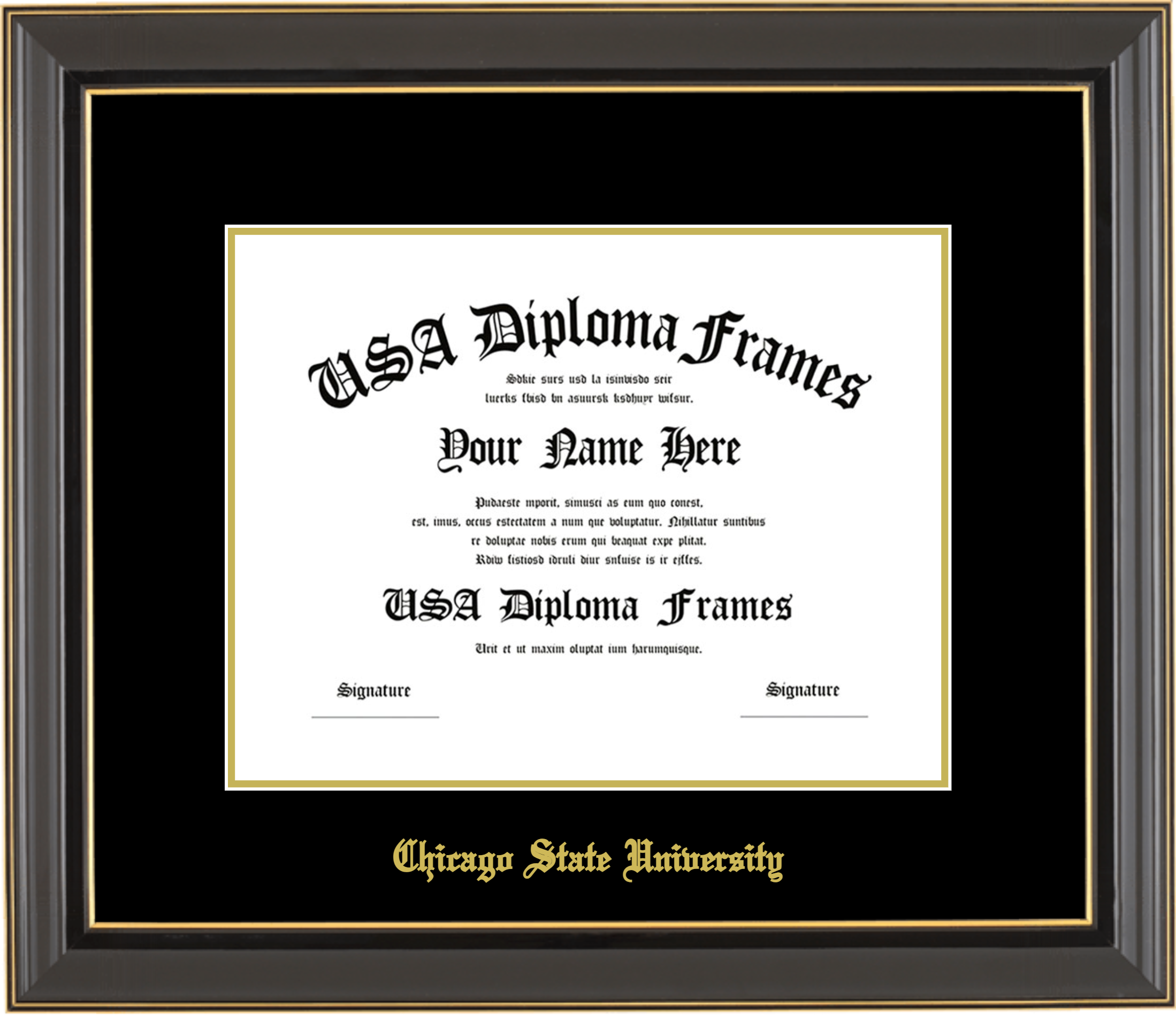 Chicago State University Diploma Frame – Black Gold Trim Glossy – Black and Gold Mat