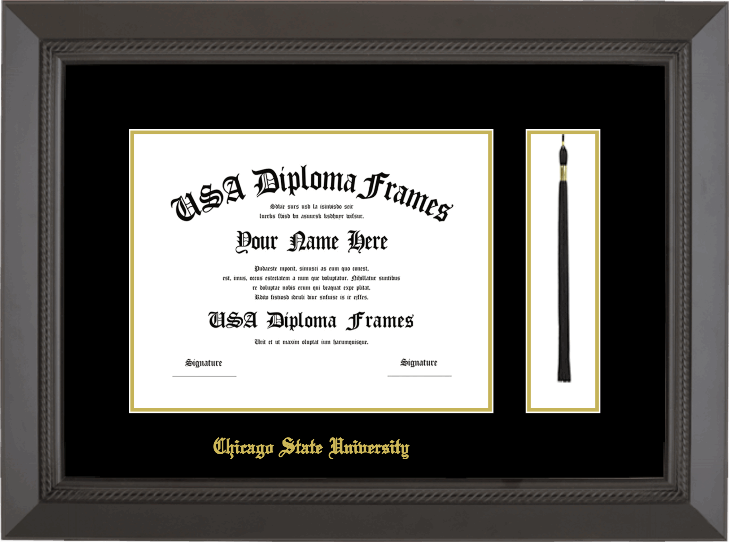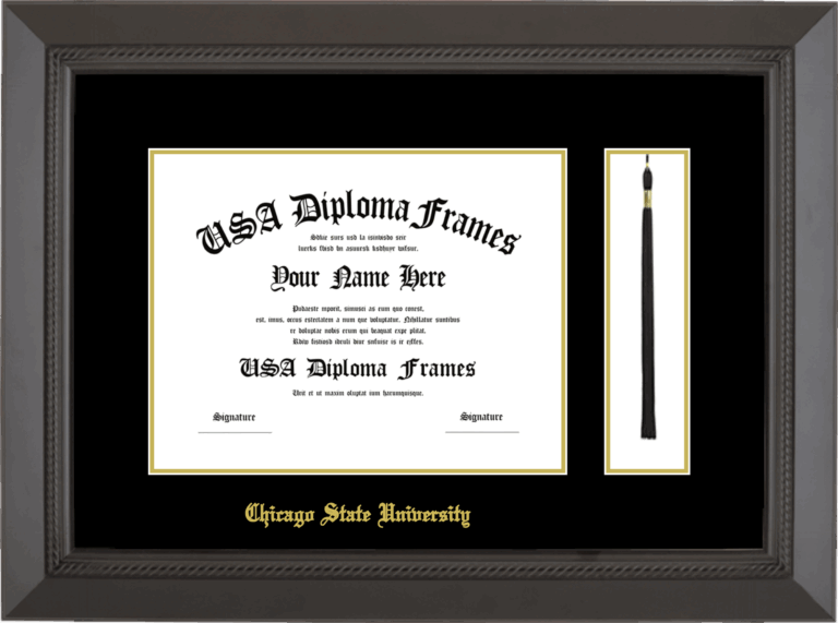 Chicago State University Diploma Frame with Tassel – Black Rope – Black and Gold Mat