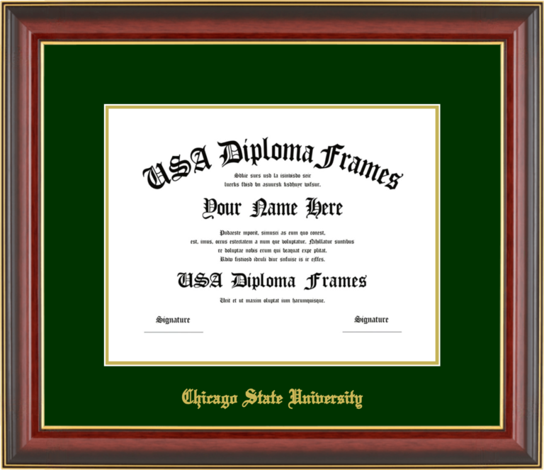 Want to explore more styles? Browse our full range of diploma frame layouts, or visit the Chicago State University to view options available for your school. Looking for a fully personalized design? Try our custom Frame Builder and create a frame that’s uniquely yours.