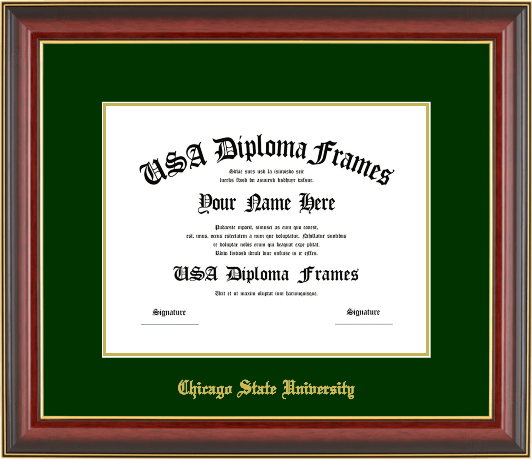 Chicago State University – Single Horizontal Document ( Diploma ) – Cherry Mahogany Gold Trim Glossy – Winter Green Mat – Gold Accent Mat – With Gold Embossing (Chicago State University)