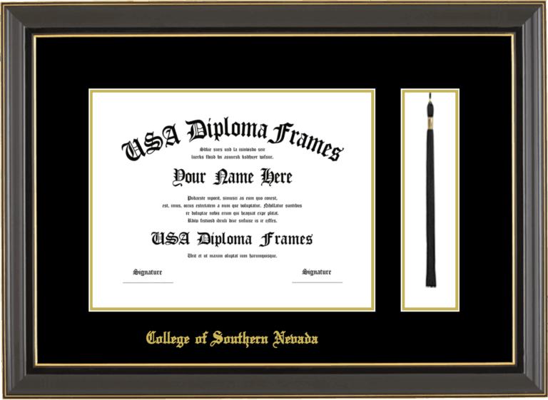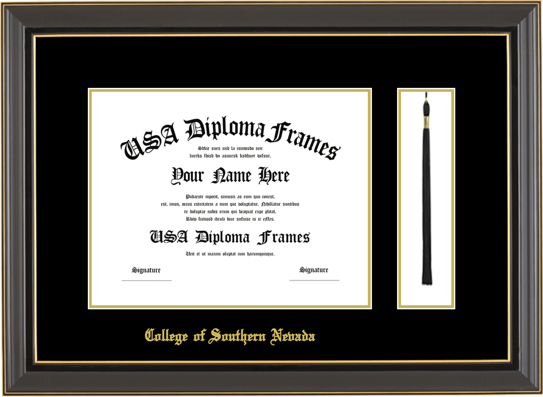 College of Southern Nevada Diploma Frame with Tassel – Black Gold Trim Glossy – Black and Gold Mat
