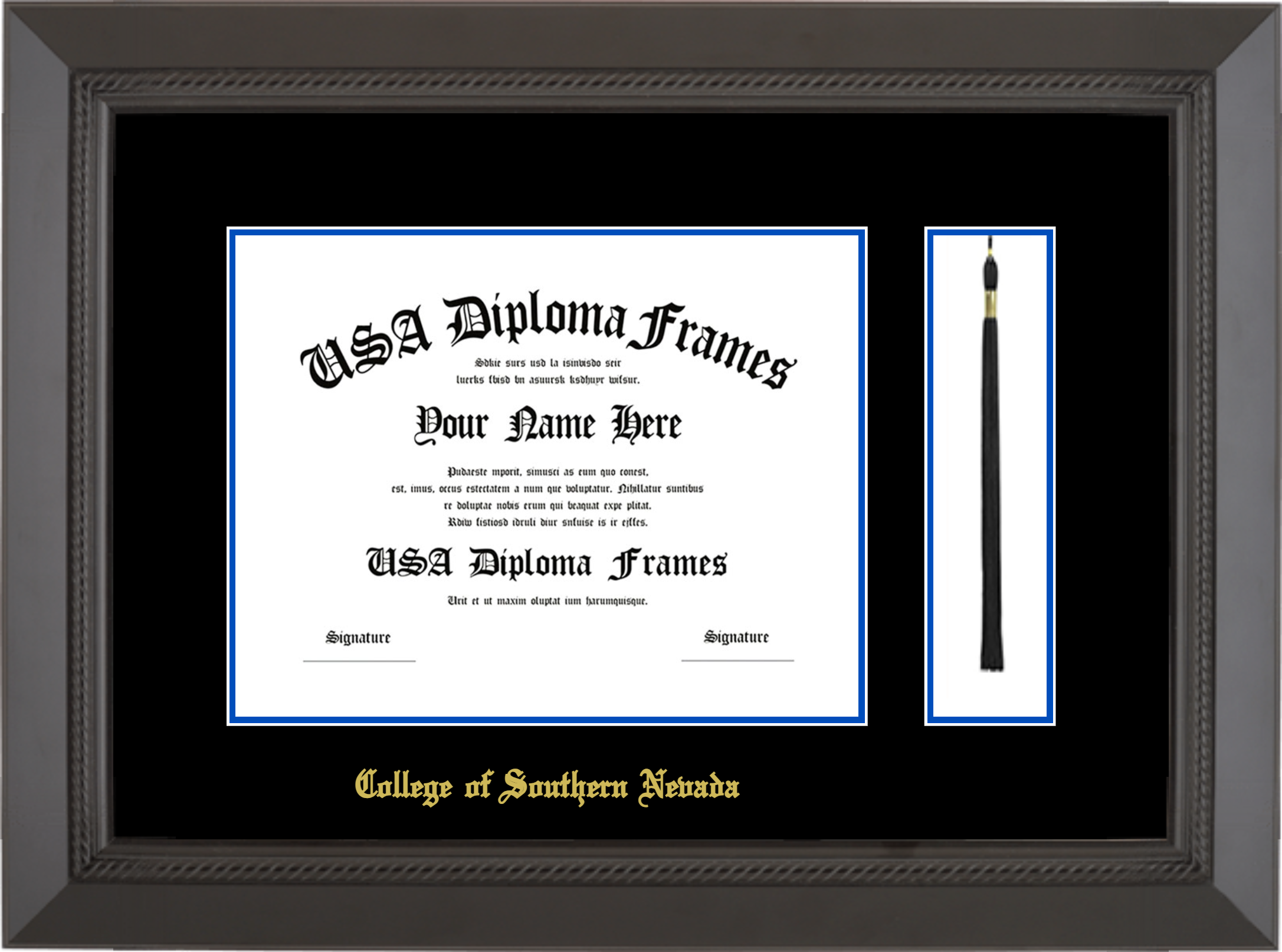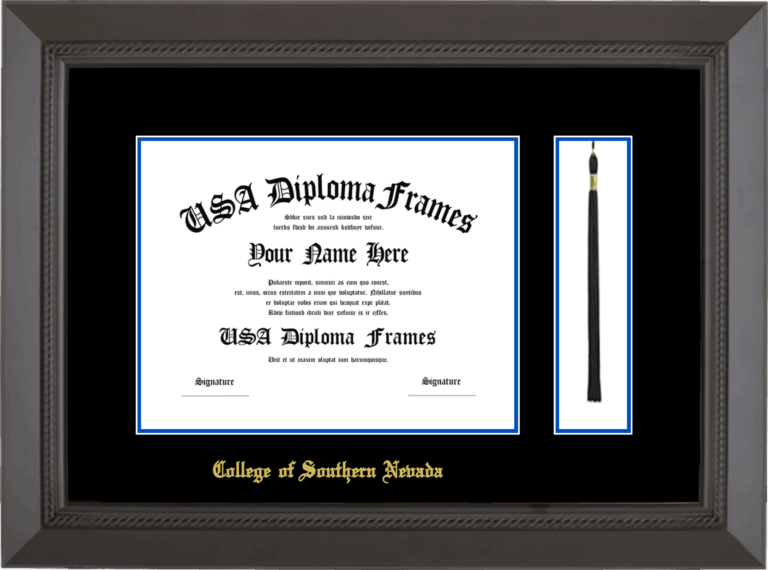 College of Southern Nevada Diploma Frame with Tassel – Black Rope – Black and Royal Blue Mat