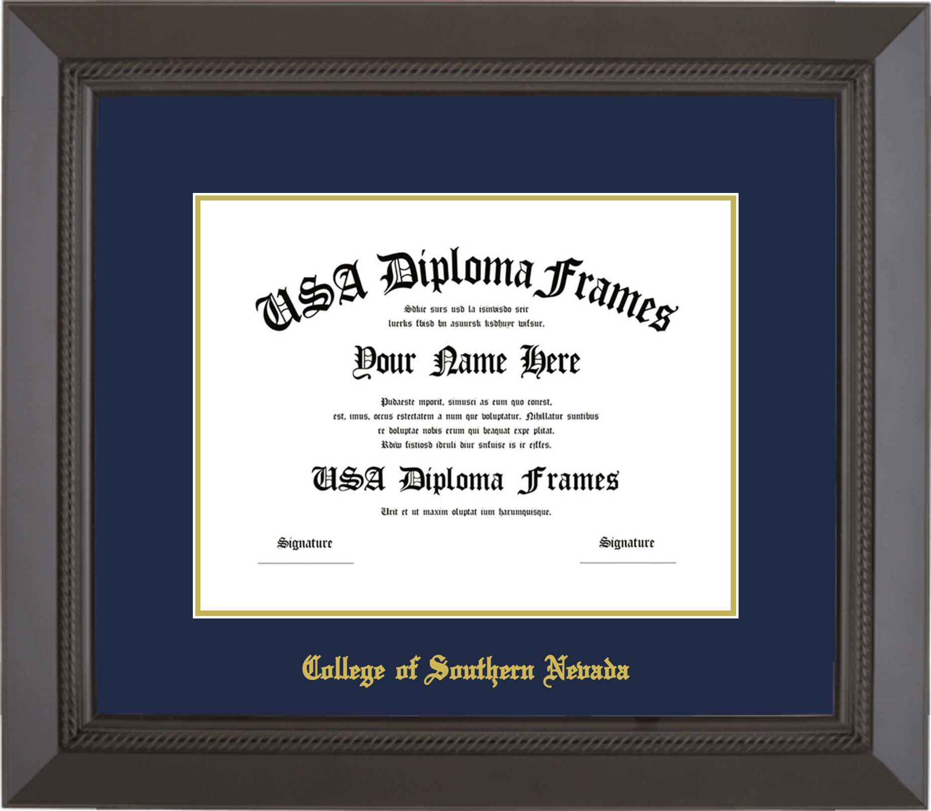 College of Southern Nevada Diploma Frame – Black Rope – Navy and Gold Mat