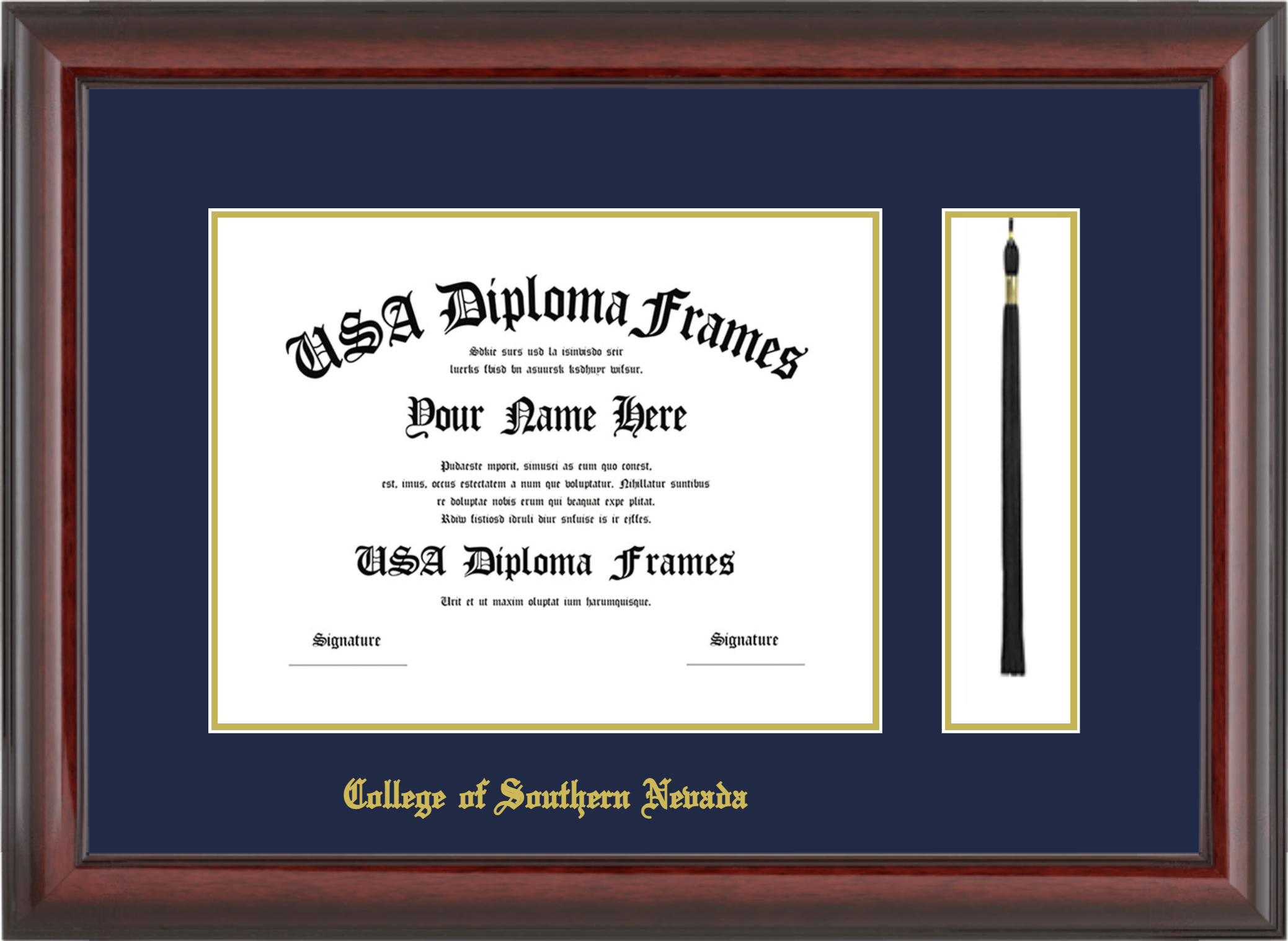 College of Southern Nevada Diploma Frame with Tassel – Cherry Mahogany Glossy – Navy and Gold Mat
