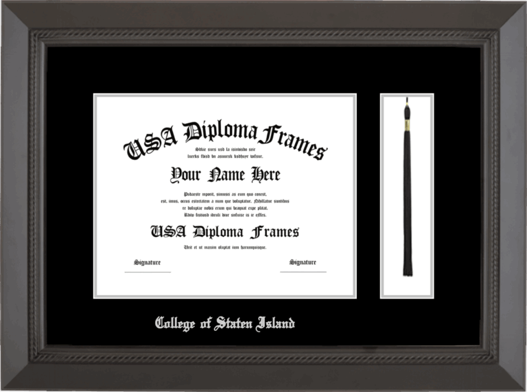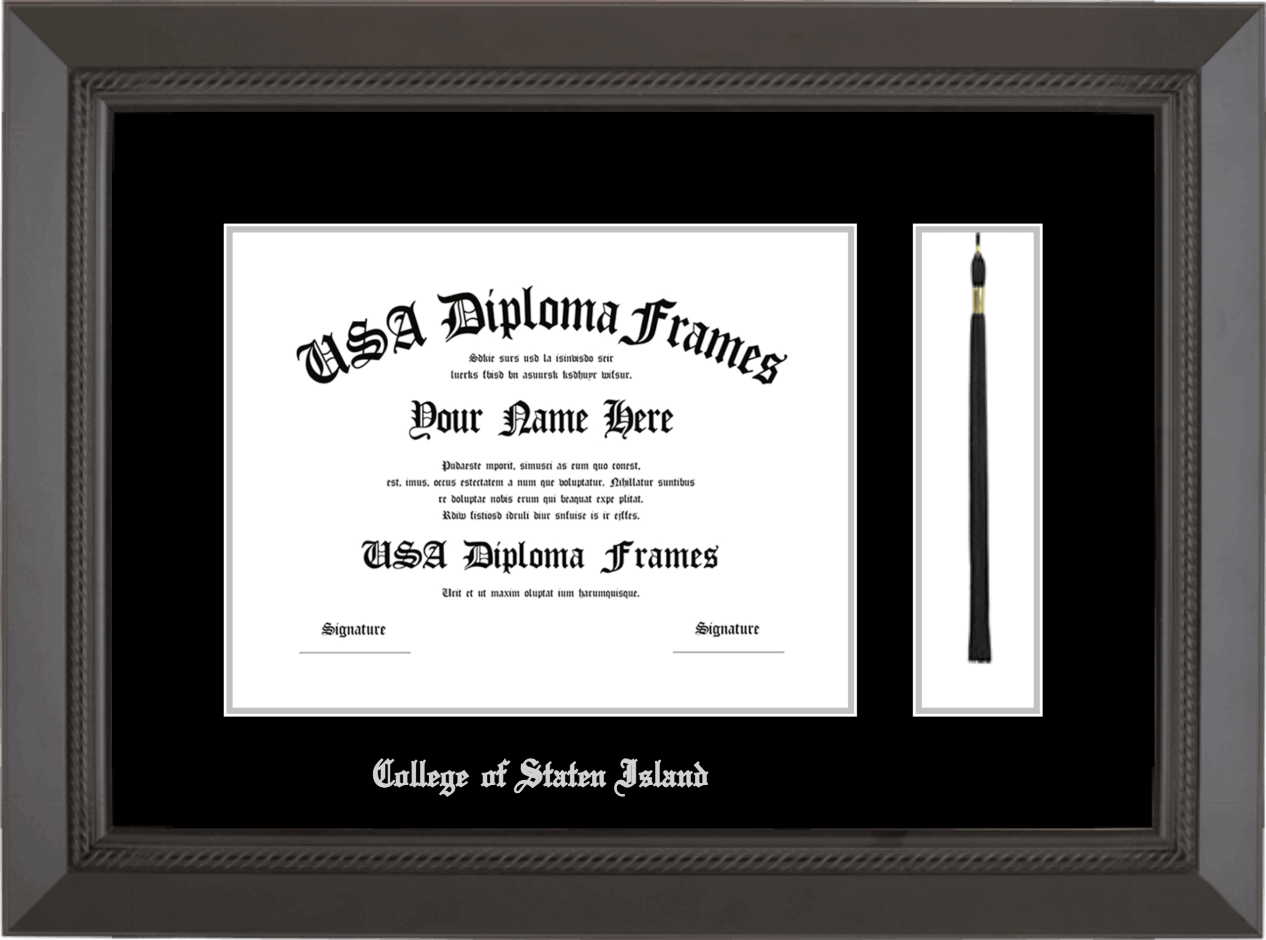 College of Staten Island Diploma Frame with Tassel – Black Rope – Black and Silver Mat