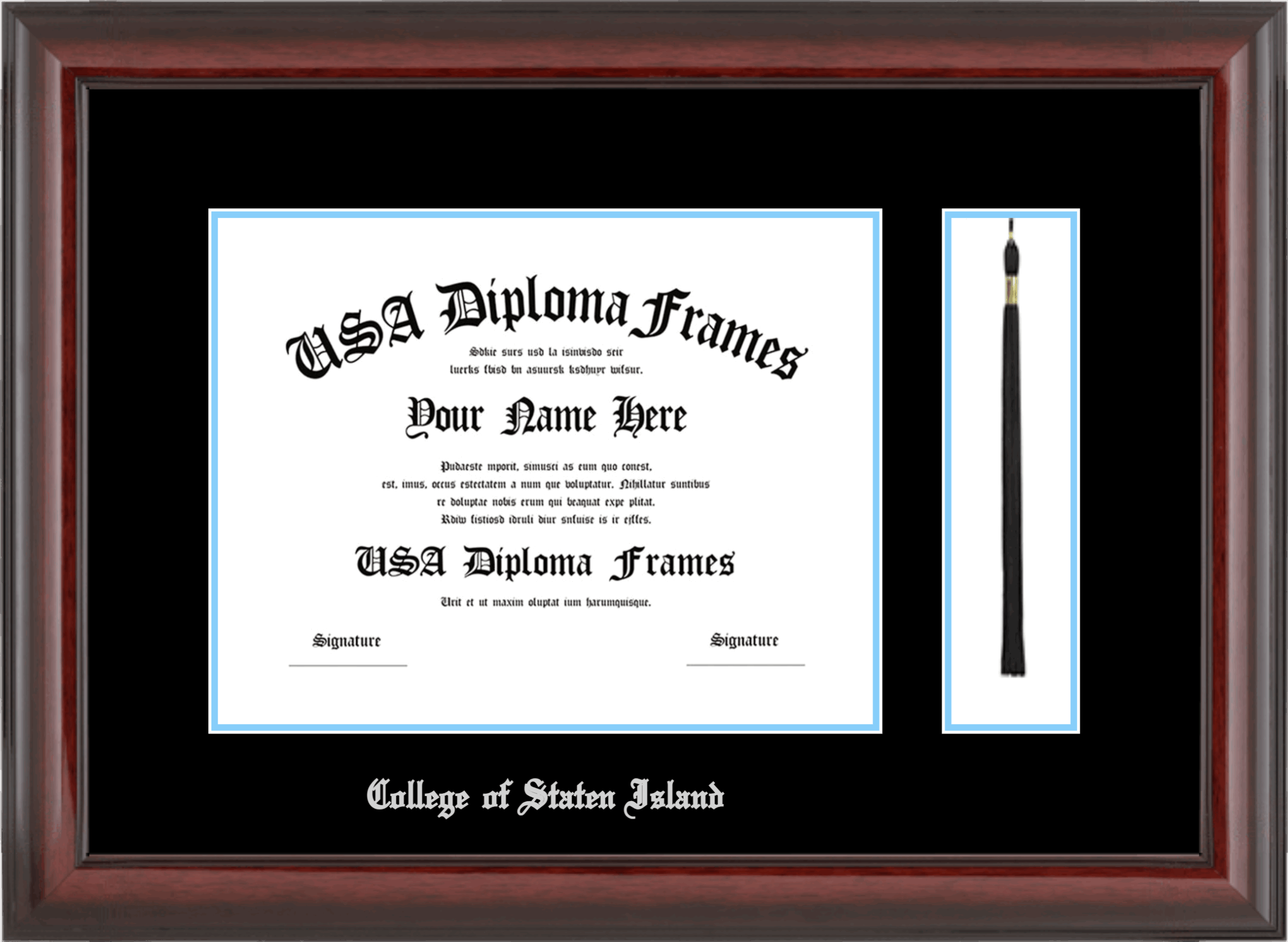 College of Staten Island Diploma Frame with Tassel – Cherry Mahogany Glossy – Black and Light Blue Mat
