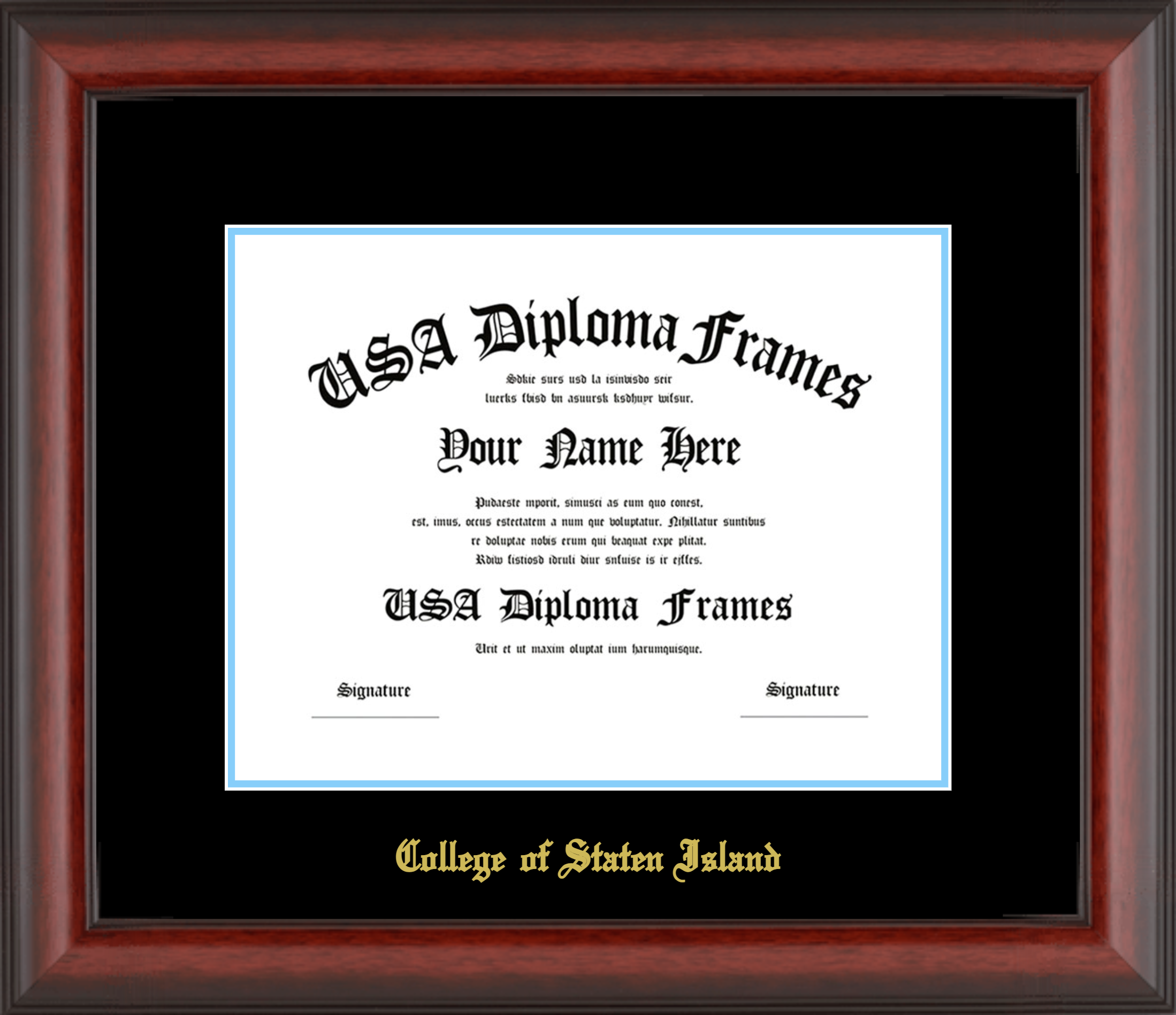 College of Staten Island Diploma Frame – Cherry Mahogany Matte – Black and Light Blue Mat