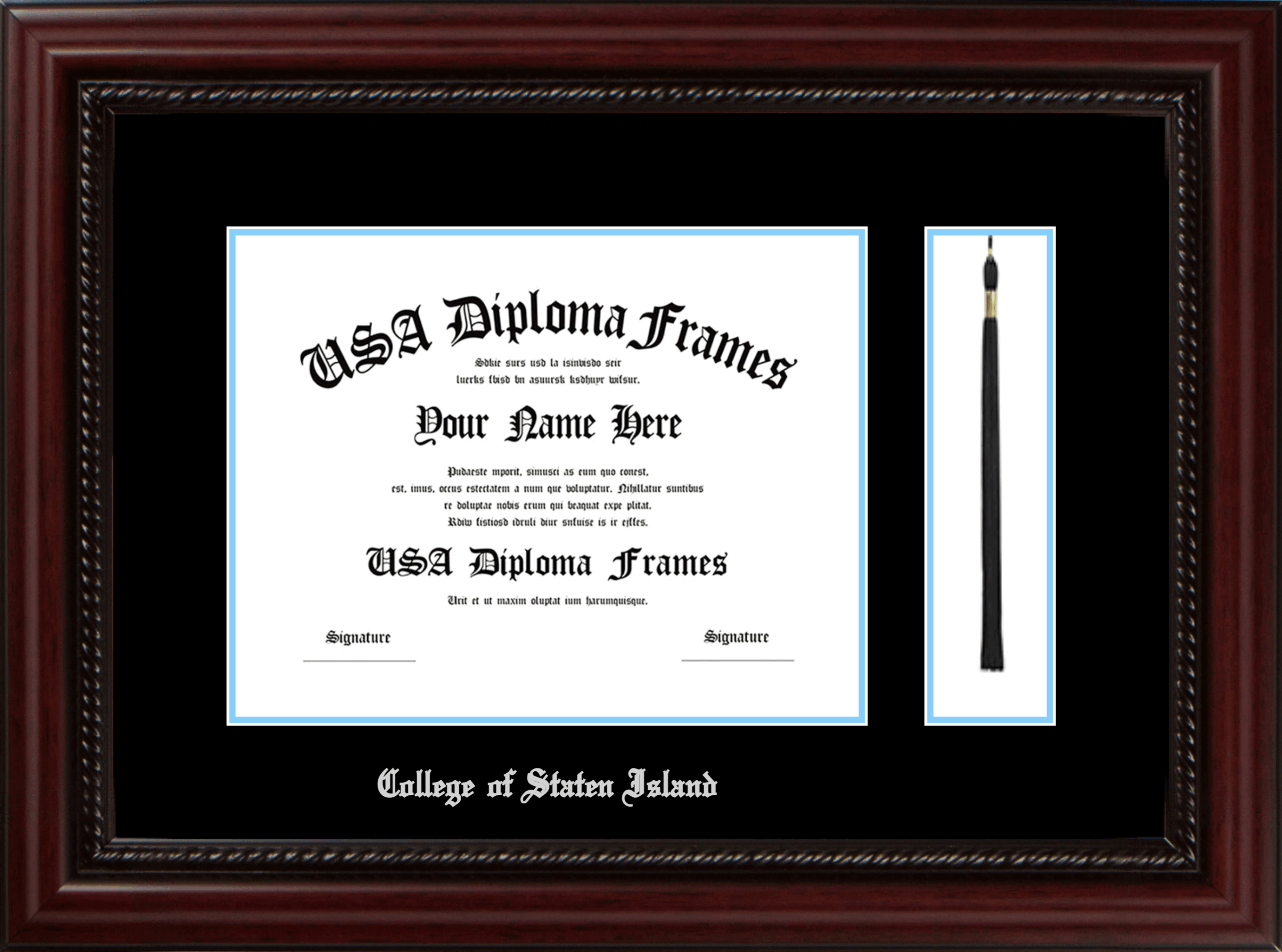 College of Staten Island Diploma Frame with Tassel – Executive Cherry Rope – Black and Light Blue Max