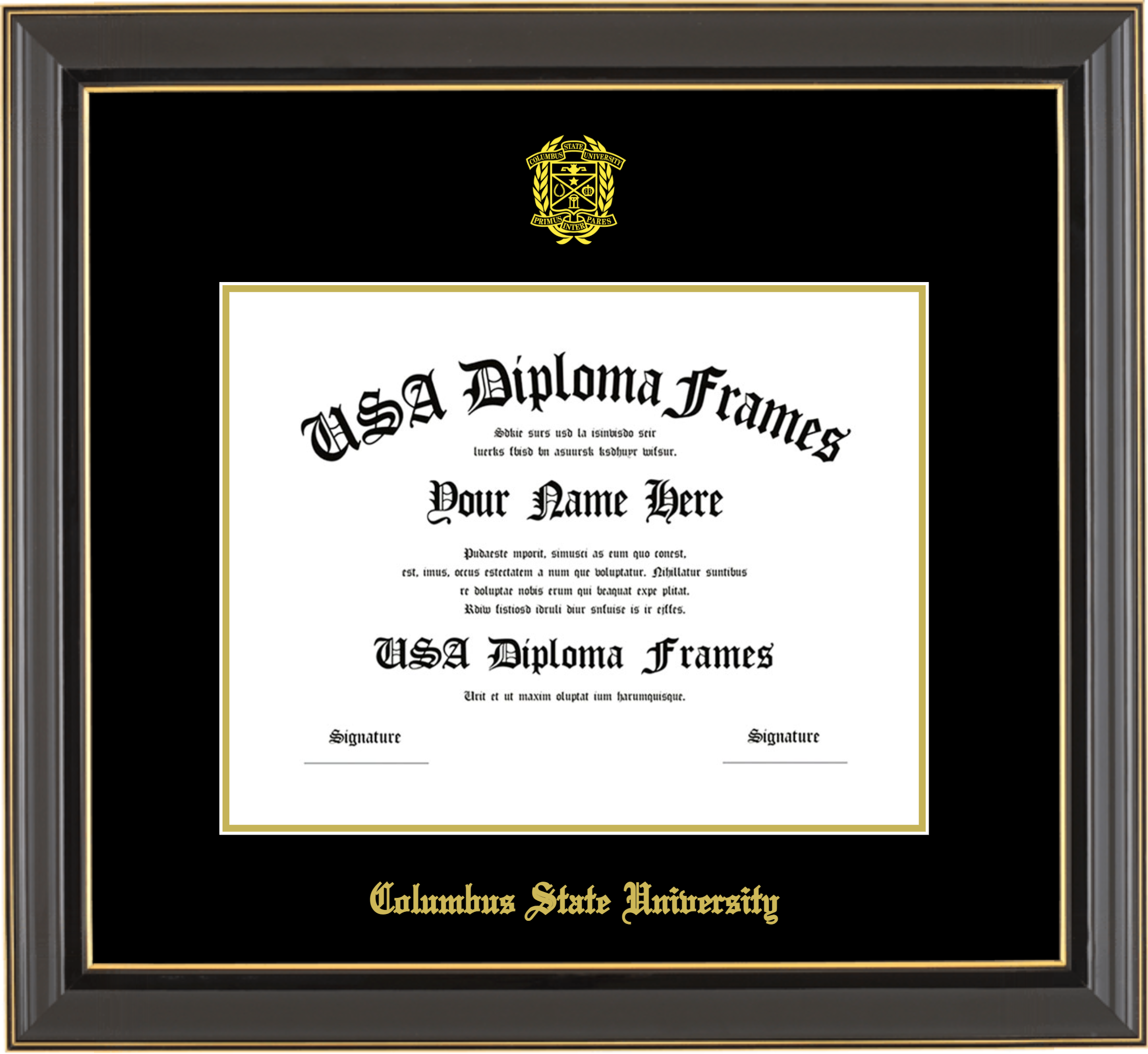 Columbus State University Diploma Frame – Black Gold Trim Glossy – Black and Gold Mat