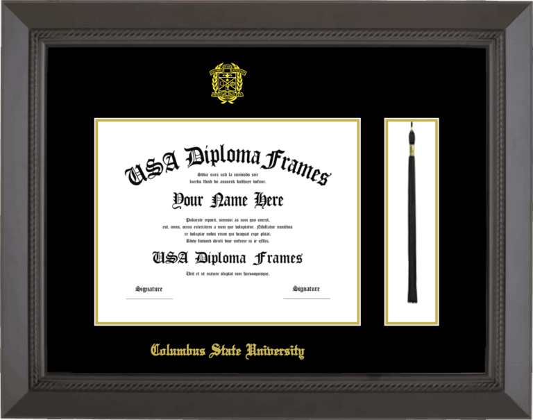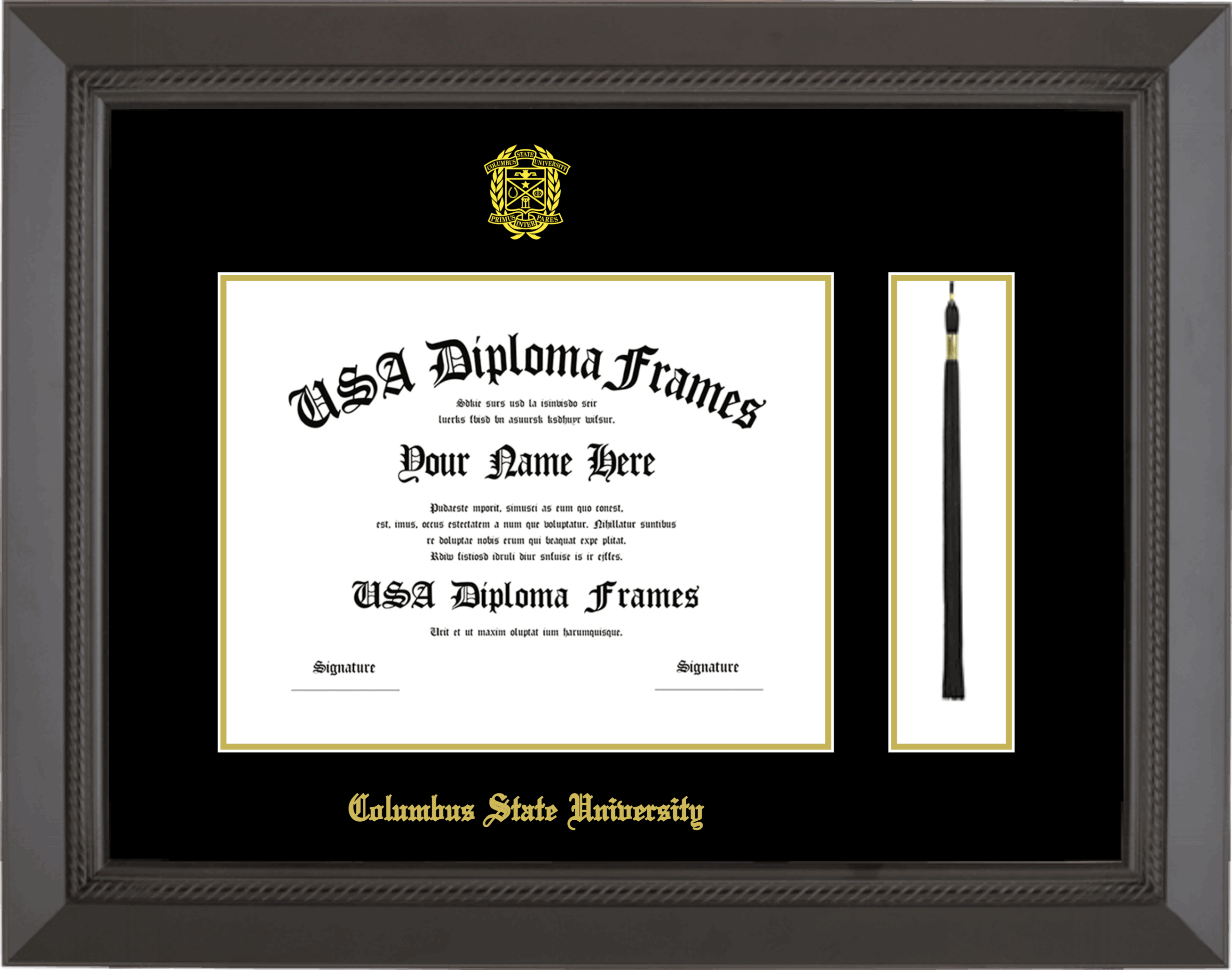 Columbus State University Diploma Frame with Tassel – Black Rope – Black and Gold Mat