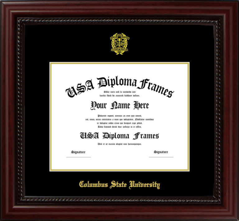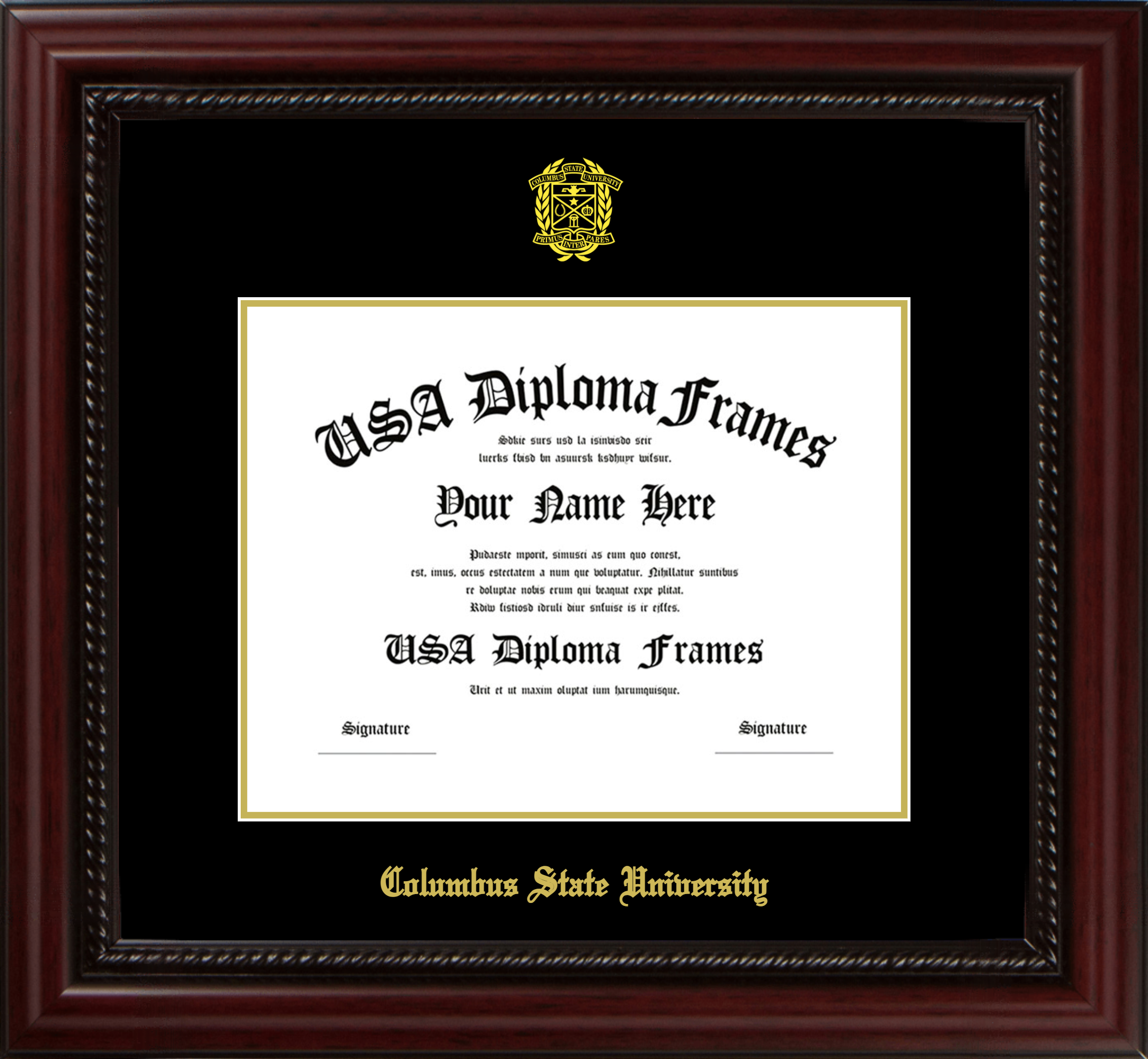 Columbus State University Diploma Frame – Executive Cherry Rope – Black and Gold Mat