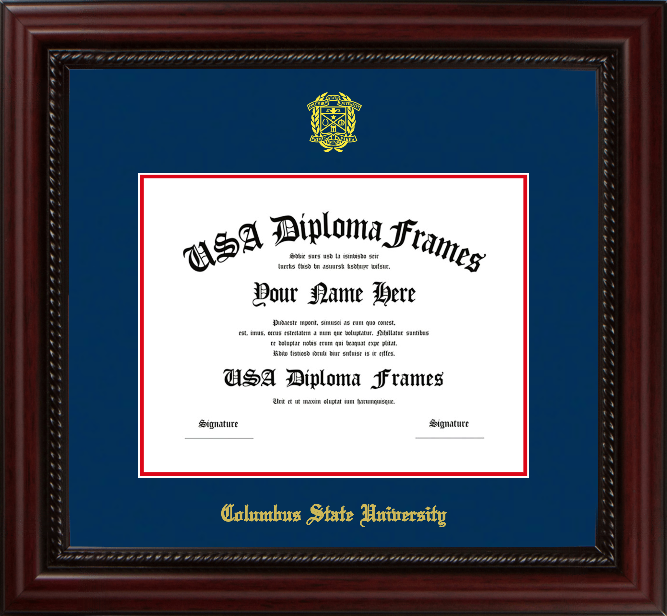 Columbus State University Diploma Frame – Executive Cherry Rope – Navy and Red Mat