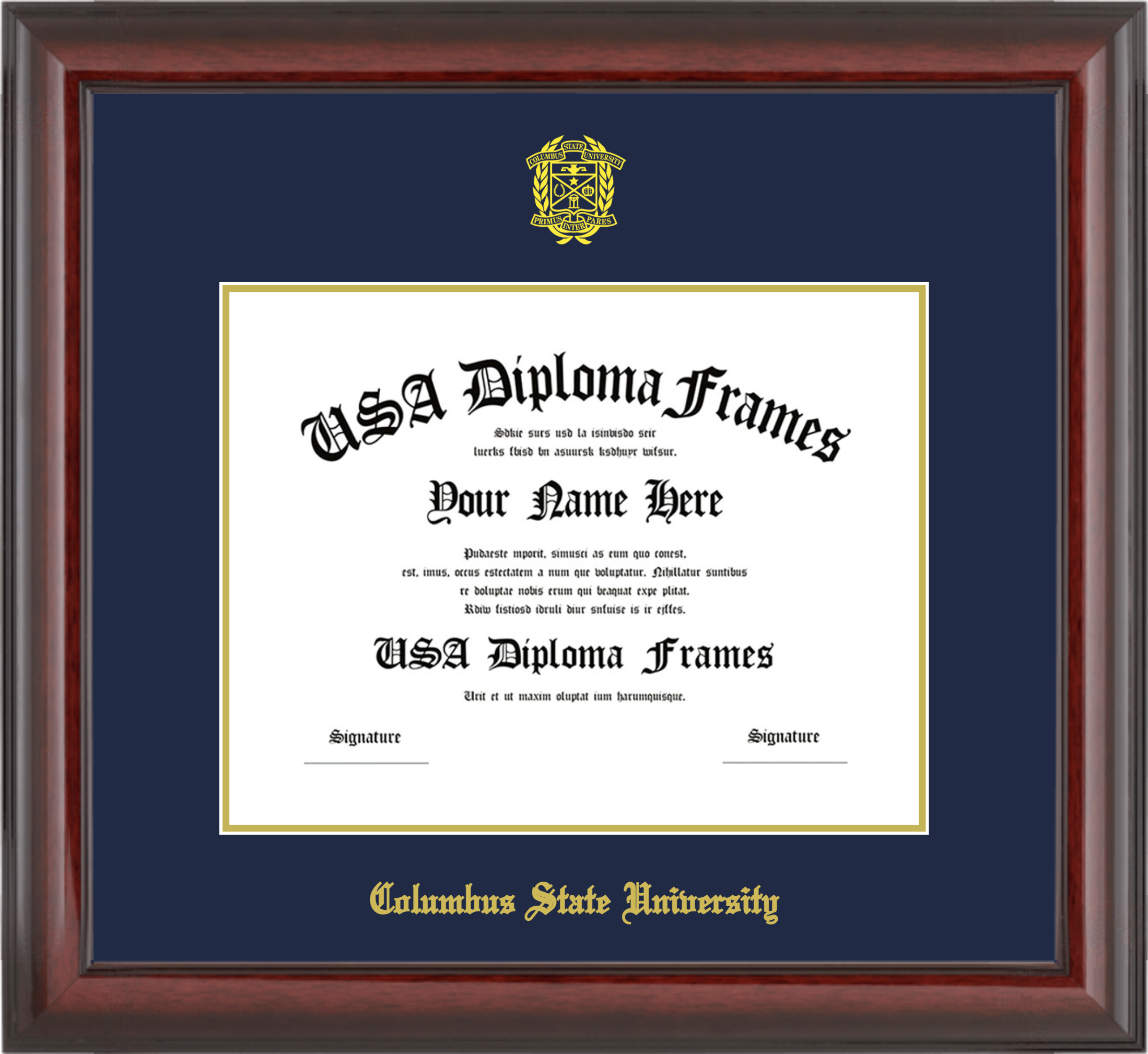 Columbus State University – Single Horizontal Document ( Bachelors ) – Cherry Mahogany Glossy – Navy Mat – Gold Accent Mat – With Seal(University Seal Gold) – With Gold Embossing (Columbus State University)