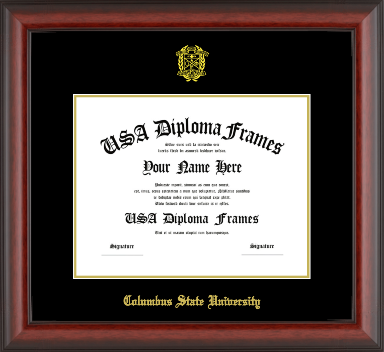 Columbus State University Diploma Frame – Cherry Mahogany Matte – Black and Gold Mat