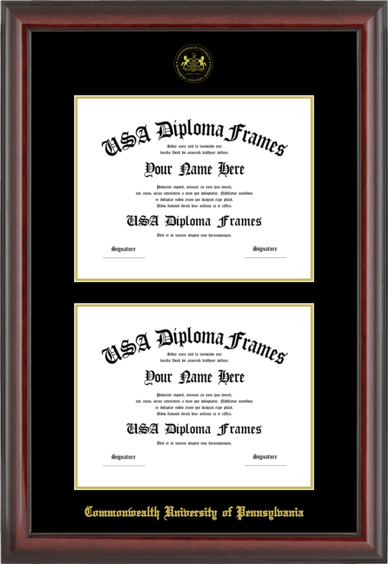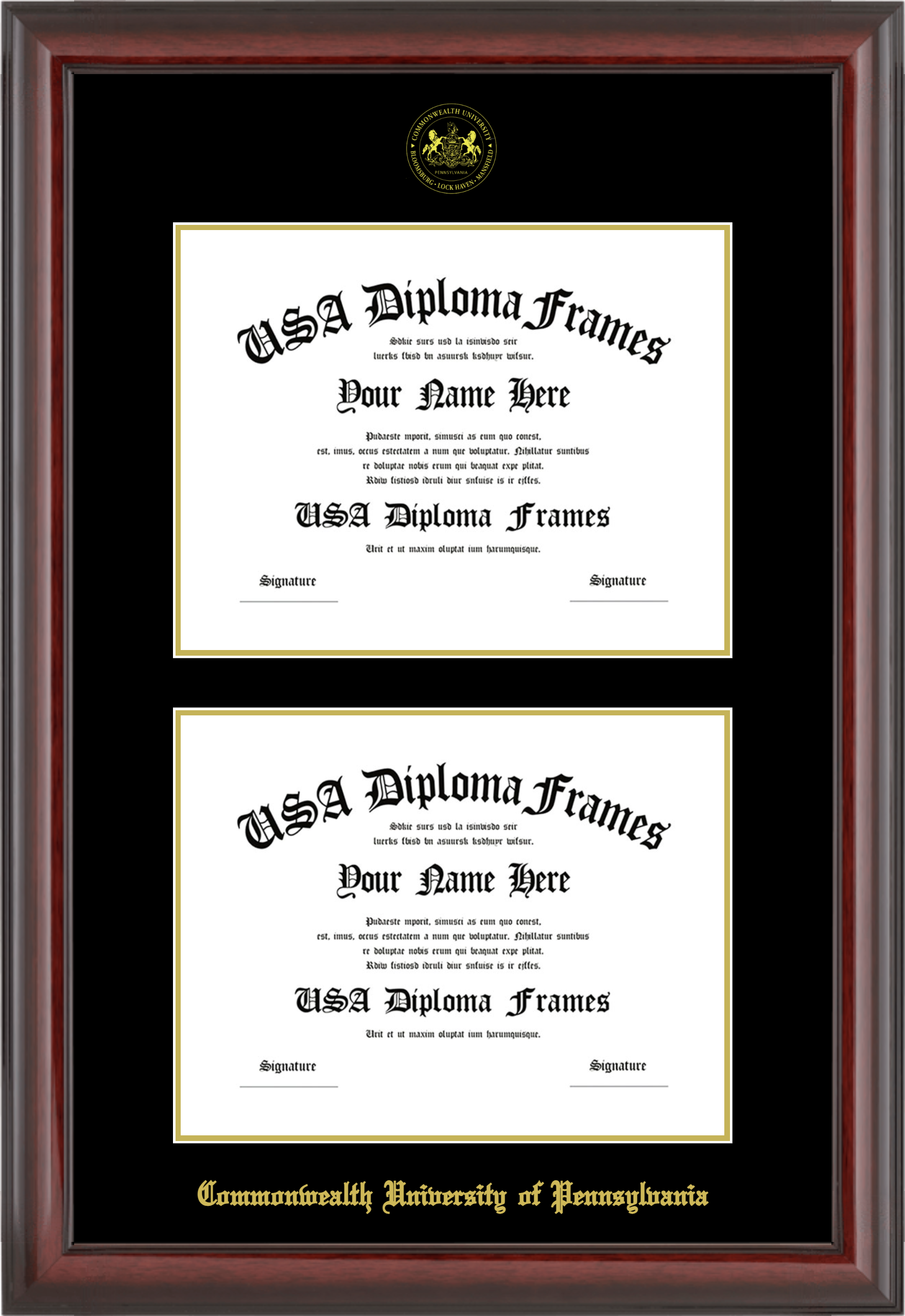Commonwealth University of Pennsylvania Double Diploma Frame – Double Document – Cherry Mahogany Glossy – Black and Gold Mat