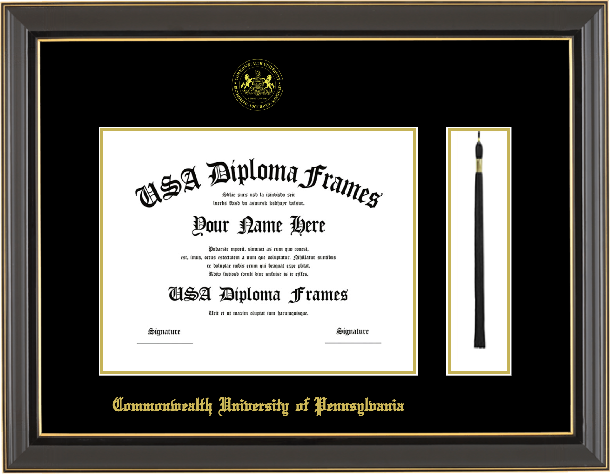 Commonwealth University of Pennsylvania Diploma Frame with Tassel – Black Gold Trim Glossy – Black and Gold Mat