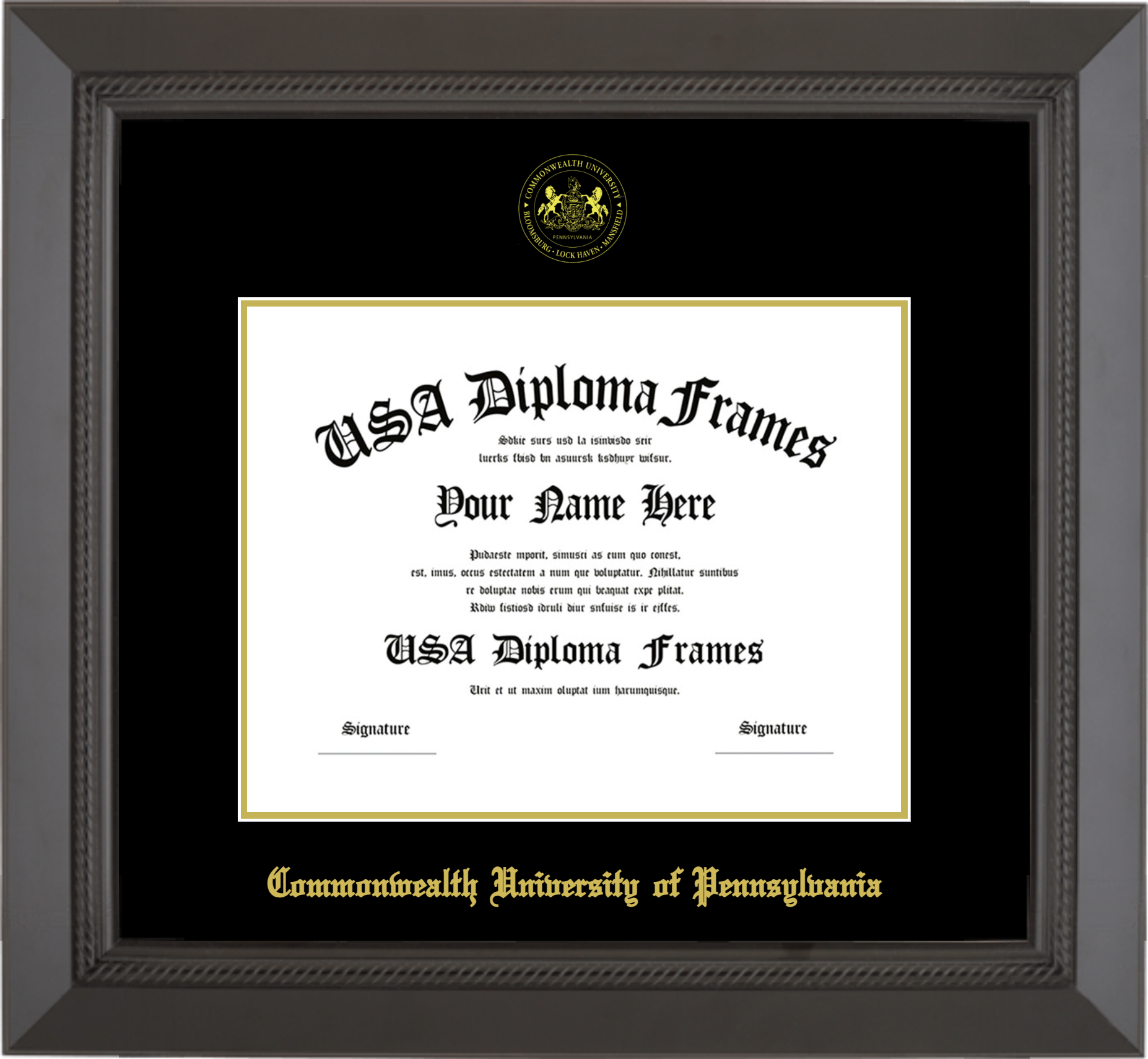 Commonwealth University of Pennsylvania Diploma Frame – Black Rope – Black and Gold Mat