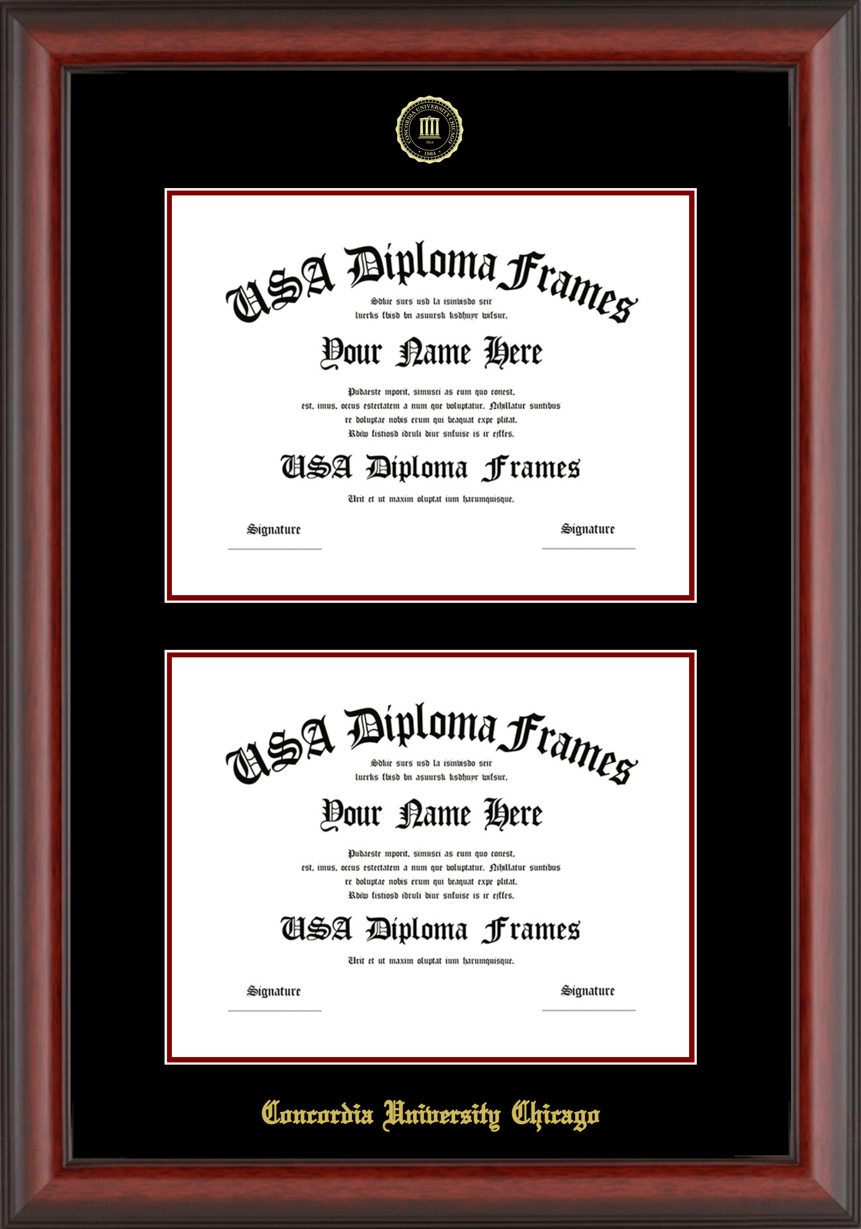Concordia University Chicago Double Diploma Frame – Cherry Mahogany Matte – Black and Maroon Mat