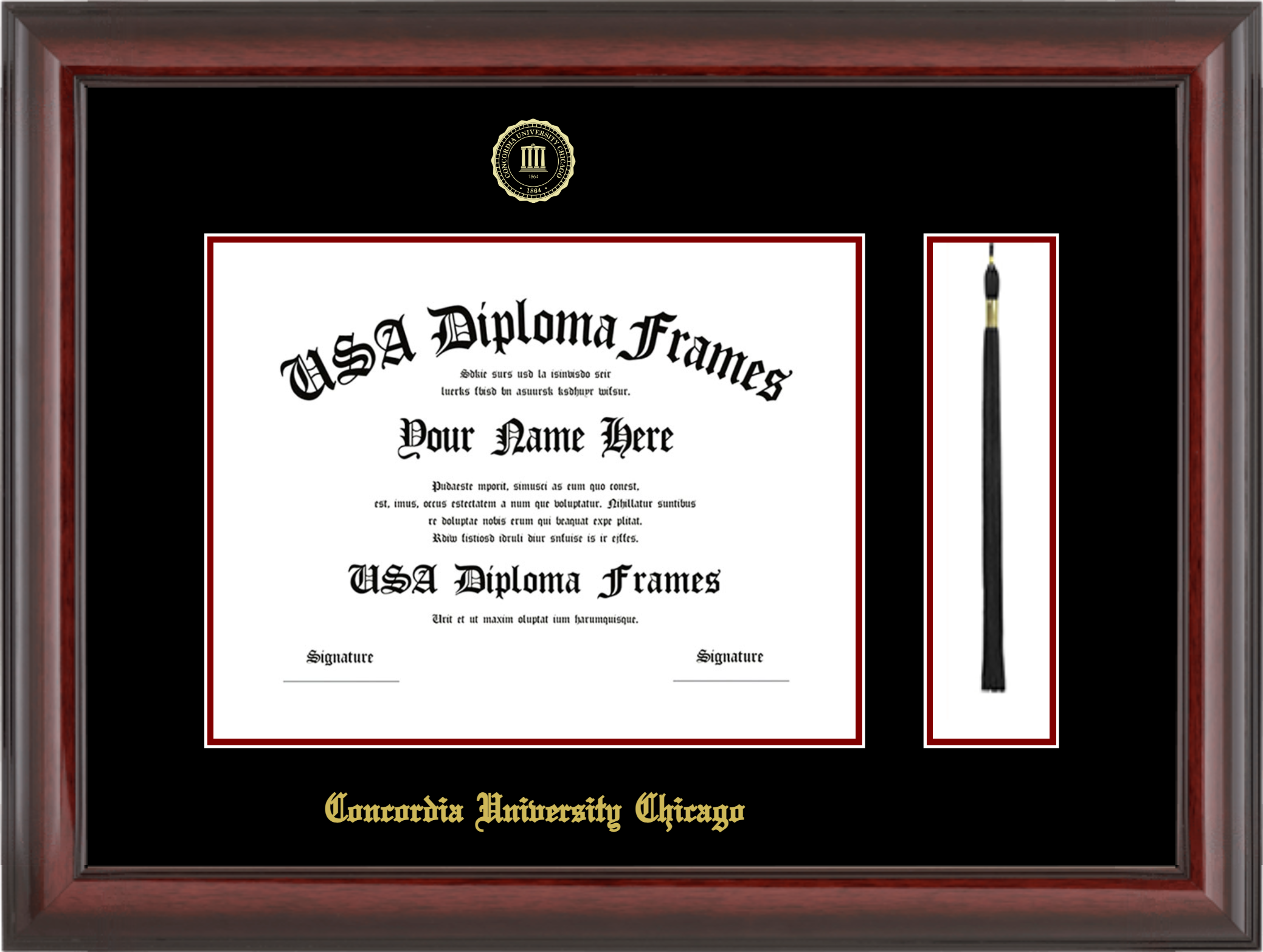 Concordia University Chicago – Single Horizontal Document ( Diploma ) – Cherry Mahogany Glossy – Black Mat – Maroon Accent Mat – With Tassel(Default)