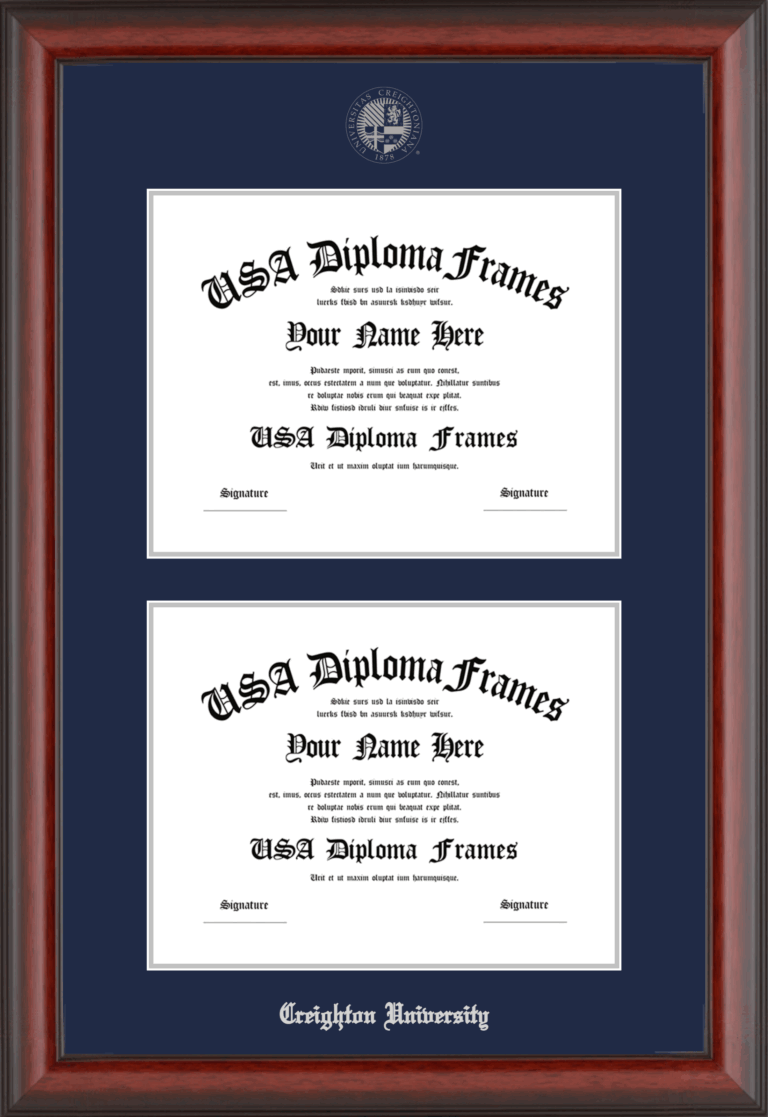 Want to explore more styles? Browse our full range of diploma frame layouts, or visit the Creighton University to view options available for your school. Looking for a fully personalized design? Try our custom Frame Builder and create a frame that’s uniquely yours.
