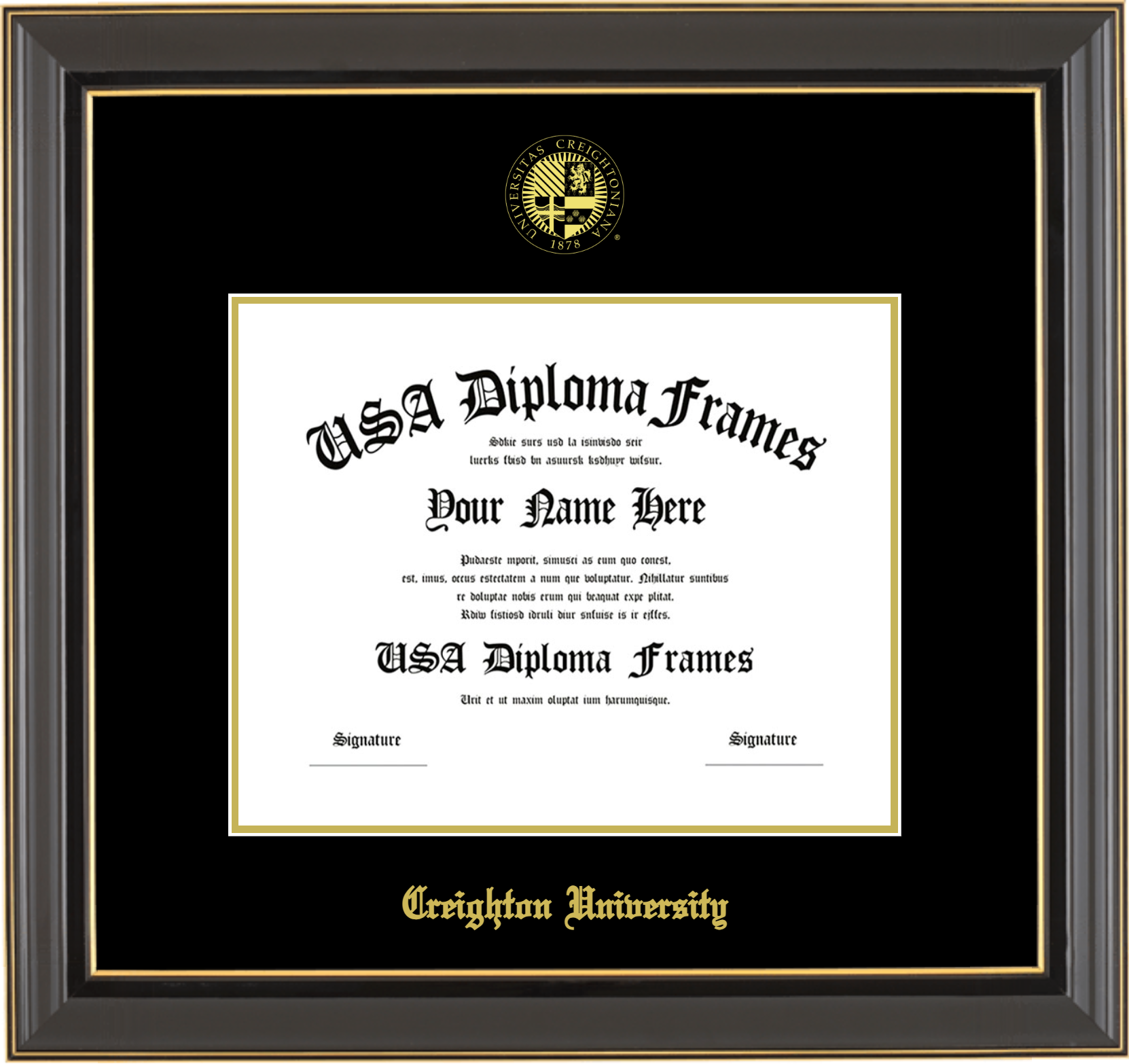 Want to explore more styles? Browse our full range of diploma frame layouts, or visit the Creighton University to view options available for your school. Looking for a fully personalized design? Try our custom Frame Builder and create a frame that’s uniquely yours.