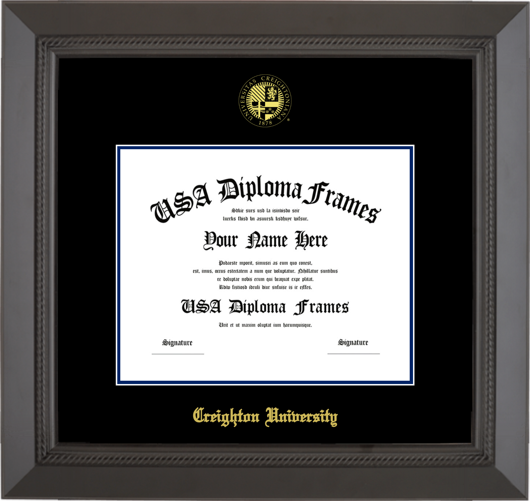 Creighton University – Single Horizontal Document ( Bachelors ) – Black Rope – Black Mat – Navy Accent Mat – With Seal(University Seal Gold) – With Gold Embossing (Creighton University)
