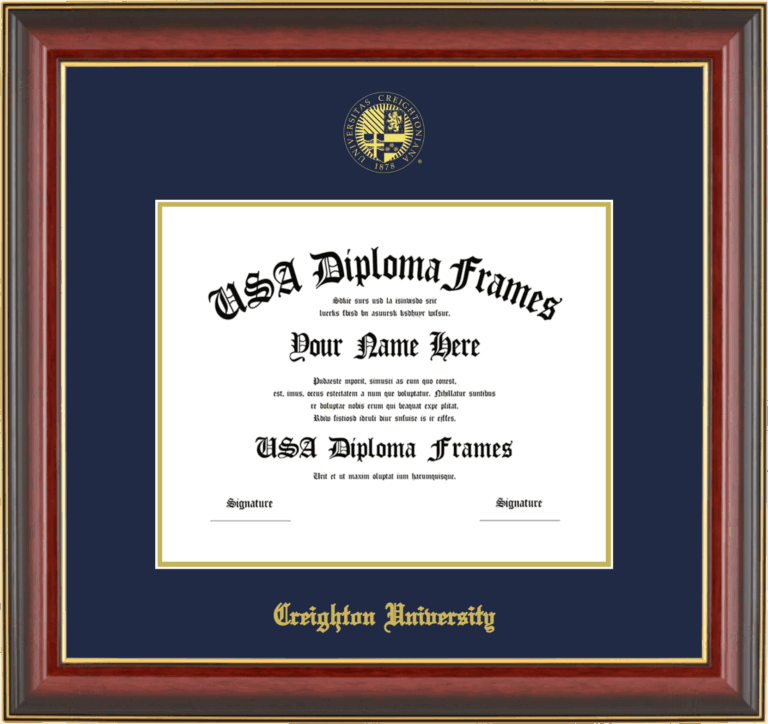 Want to explore more styles? Browse our full range of diploma frame layouts, or visit the Creighton University to view options available for your school. Looking for a fully personalized design? Try our custom Frame Builder and create a frame that’s uniquely yours.