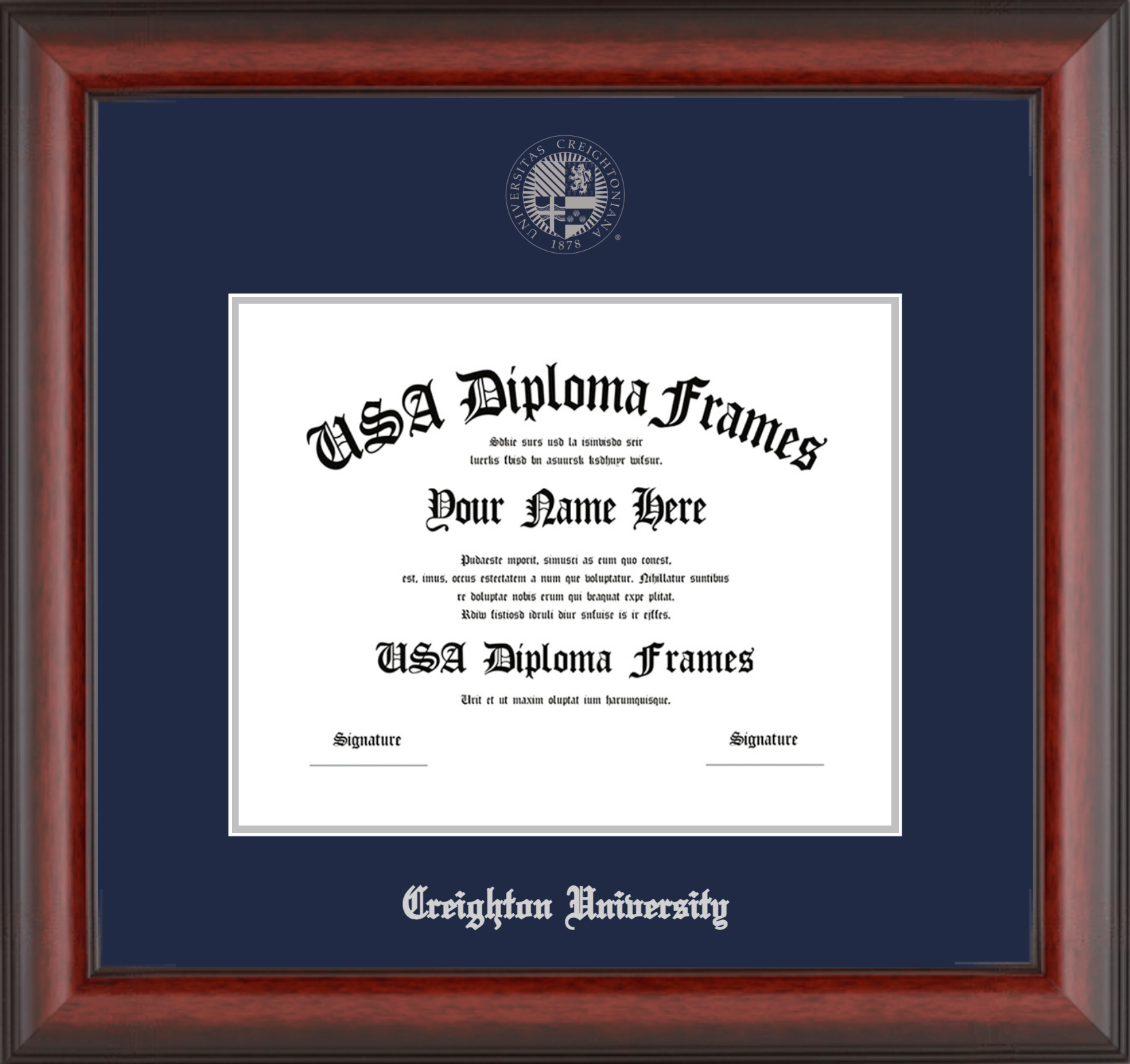 Want to explore more styles? Browse our full range of diploma frame layouts, or visit the Creighton University to view options available for your school. Looking for a fully personalized design? Try our custom Frame Builder and create a frame that’s uniquely yours.