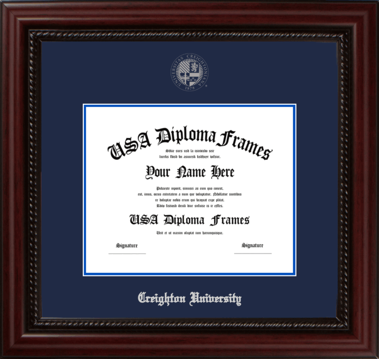 Want to explore more styles? Browse our full range of diploma frame layouts, or visit the Creighton University to view options available for your school. Looking for a fully personalized design? Try our custom Frame Builder and create a frame that’s uniquely yours.