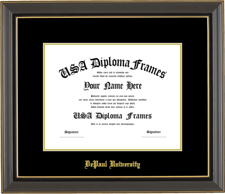 DePaul University Diploma Frame – Black Gold Trim Glossy – Black and Gold Mat