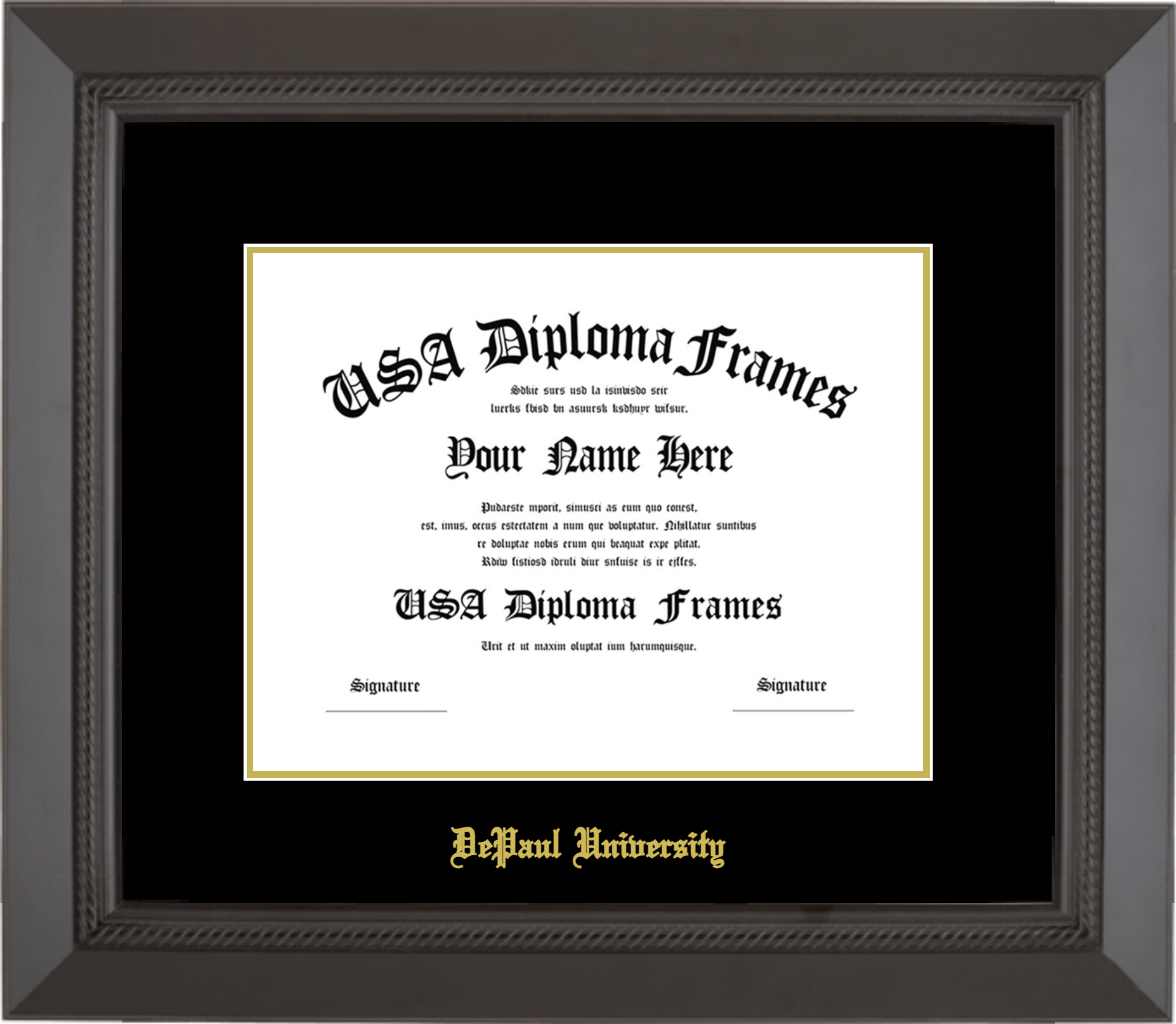 DePaul University Diploma Frame – Black Rope – Black and Gold Mat