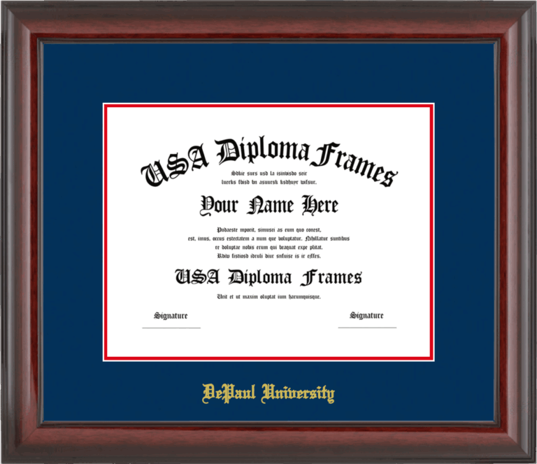 Want to explore more styles? Browse our full range of diploma frame layouts, or visit the DePaul University to view options available for your school. Looking for a fully personalized design? Try our custom Frame Builder and create a frame that’s uniquely yours.