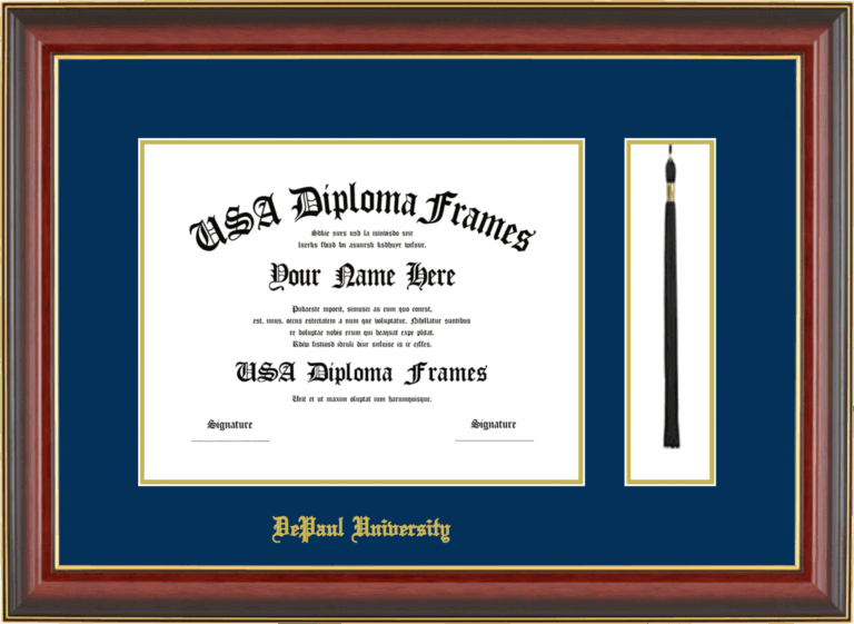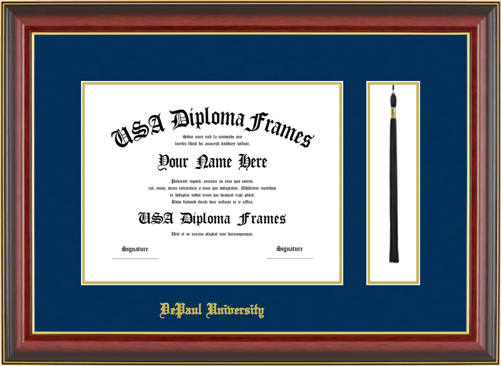 DePaul University Diploma Frame with Tassel – Cherry Mahogany Gold Trim Glossy – Navy and Gold Mat