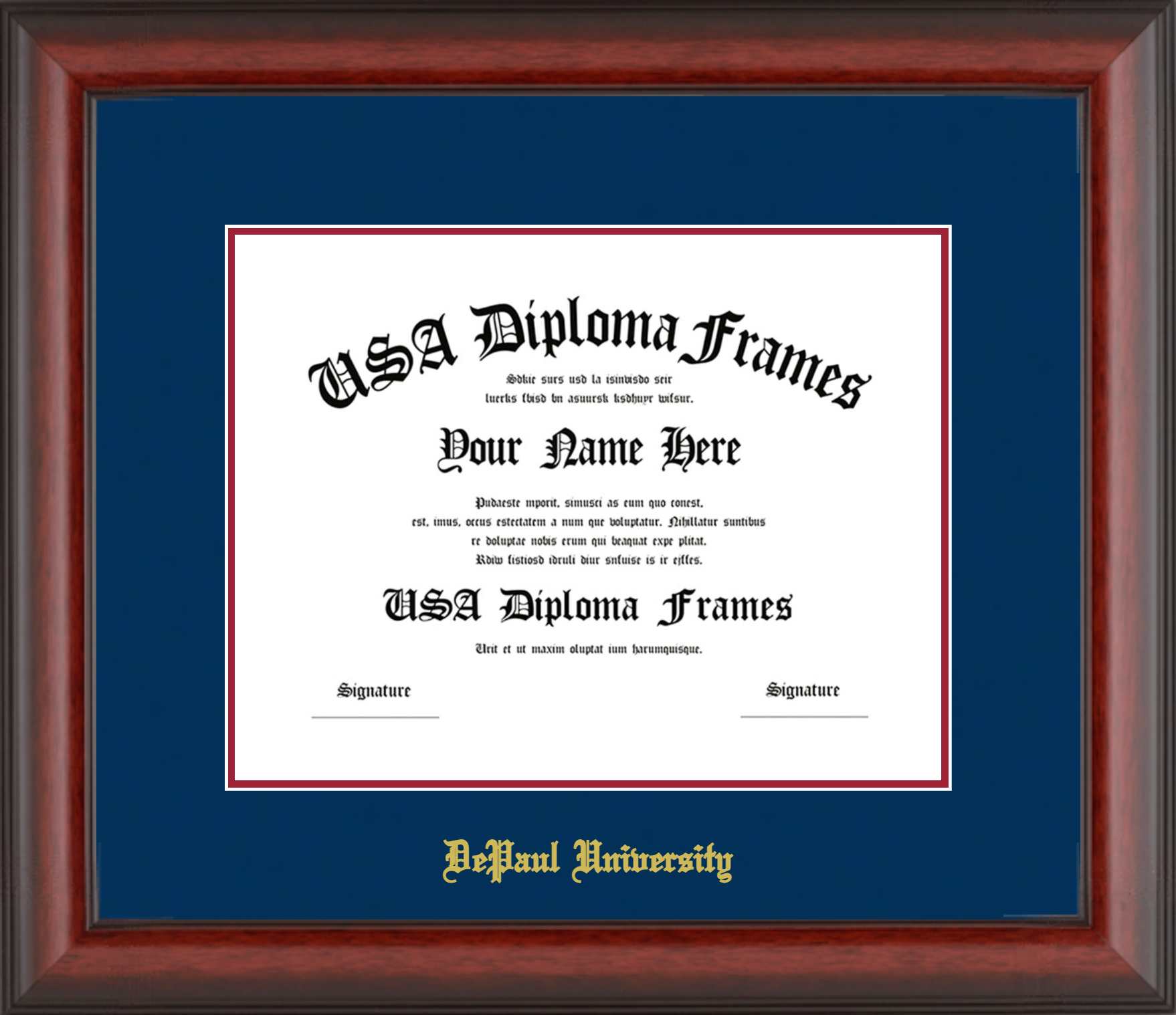 DePaul University Diploma Frame – Cherry Mahogany Matte – Navy and Crimson Mat