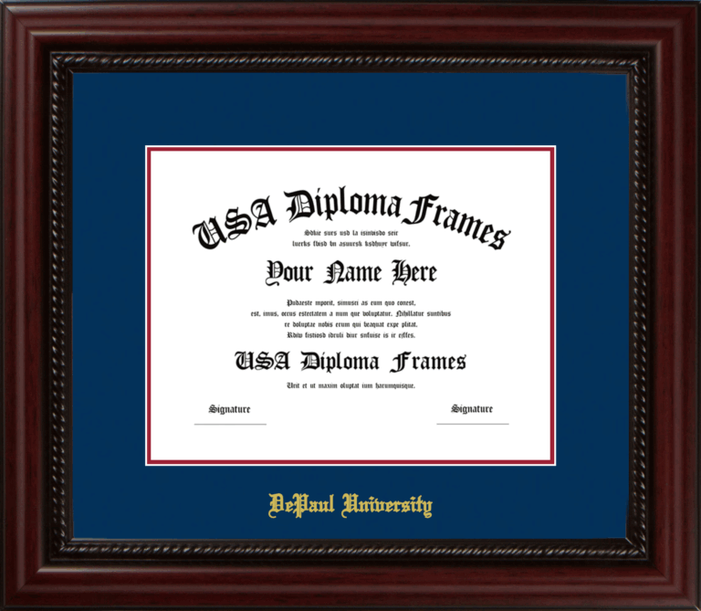 DePaul University Diploma Frame – Executive Cherry Rope – Navy and Crimson Mat