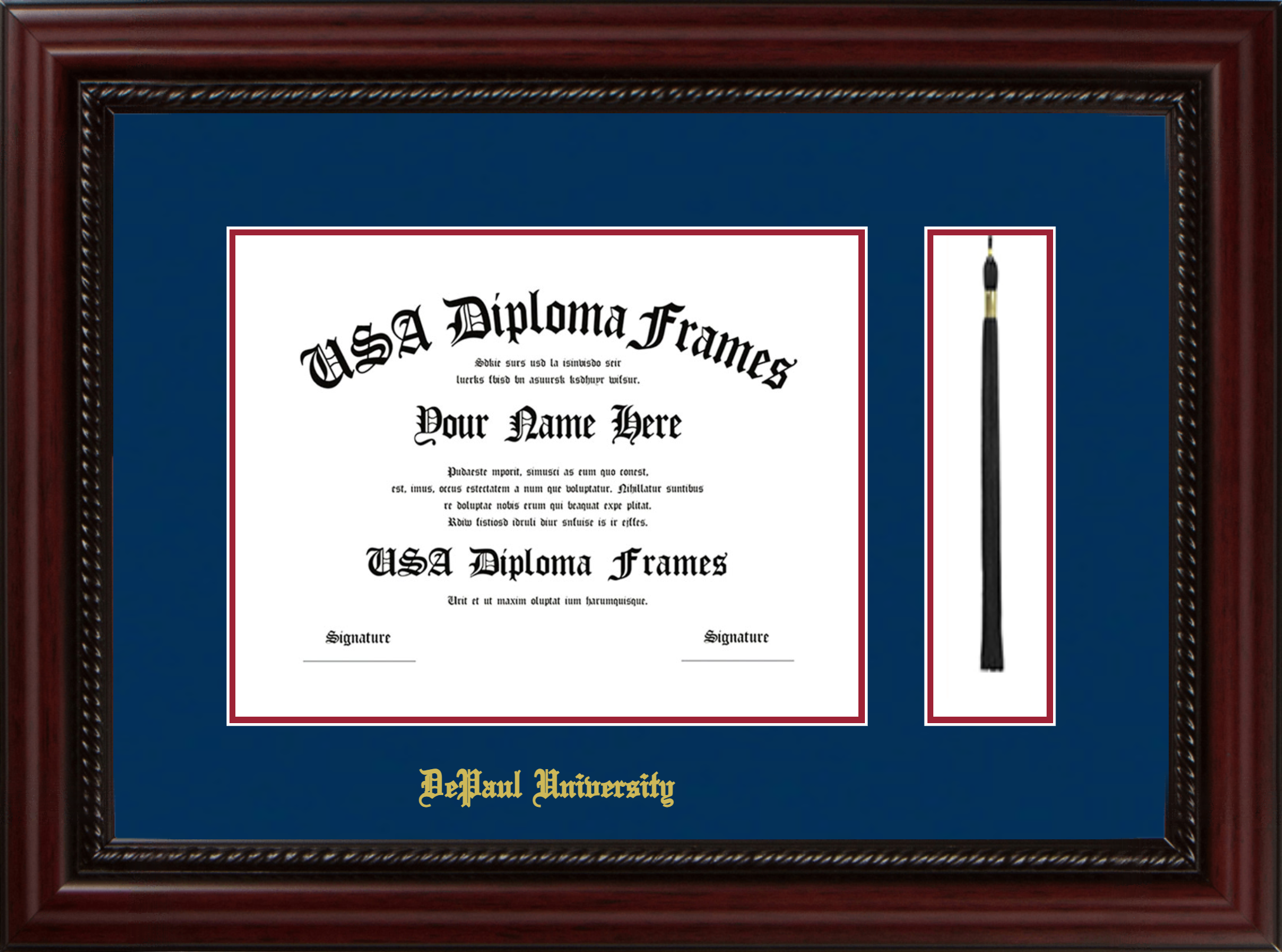 DePaul University Diploma Frame with Tassel – Executive Cherry Rope – Navy and Crimson Mat